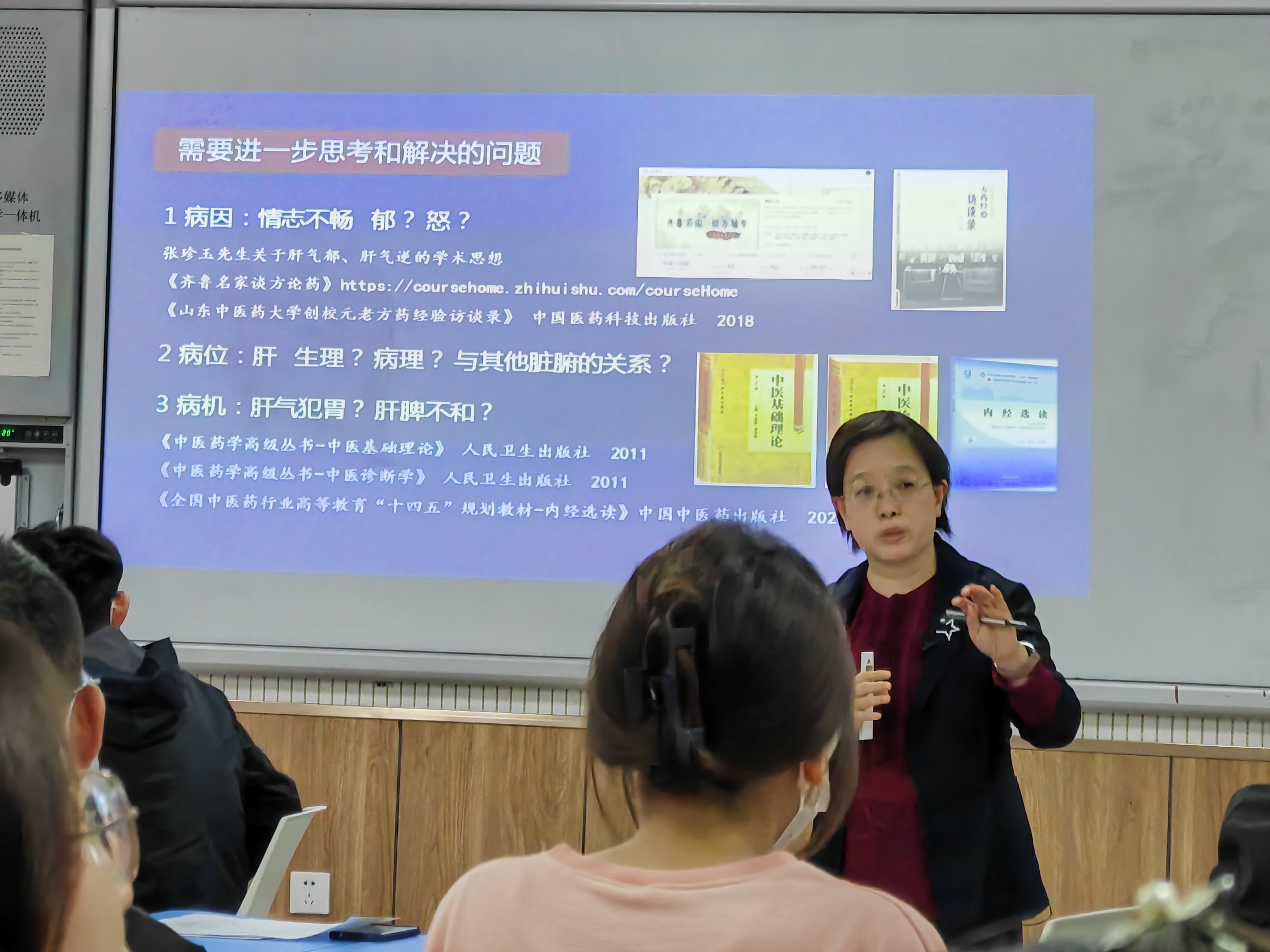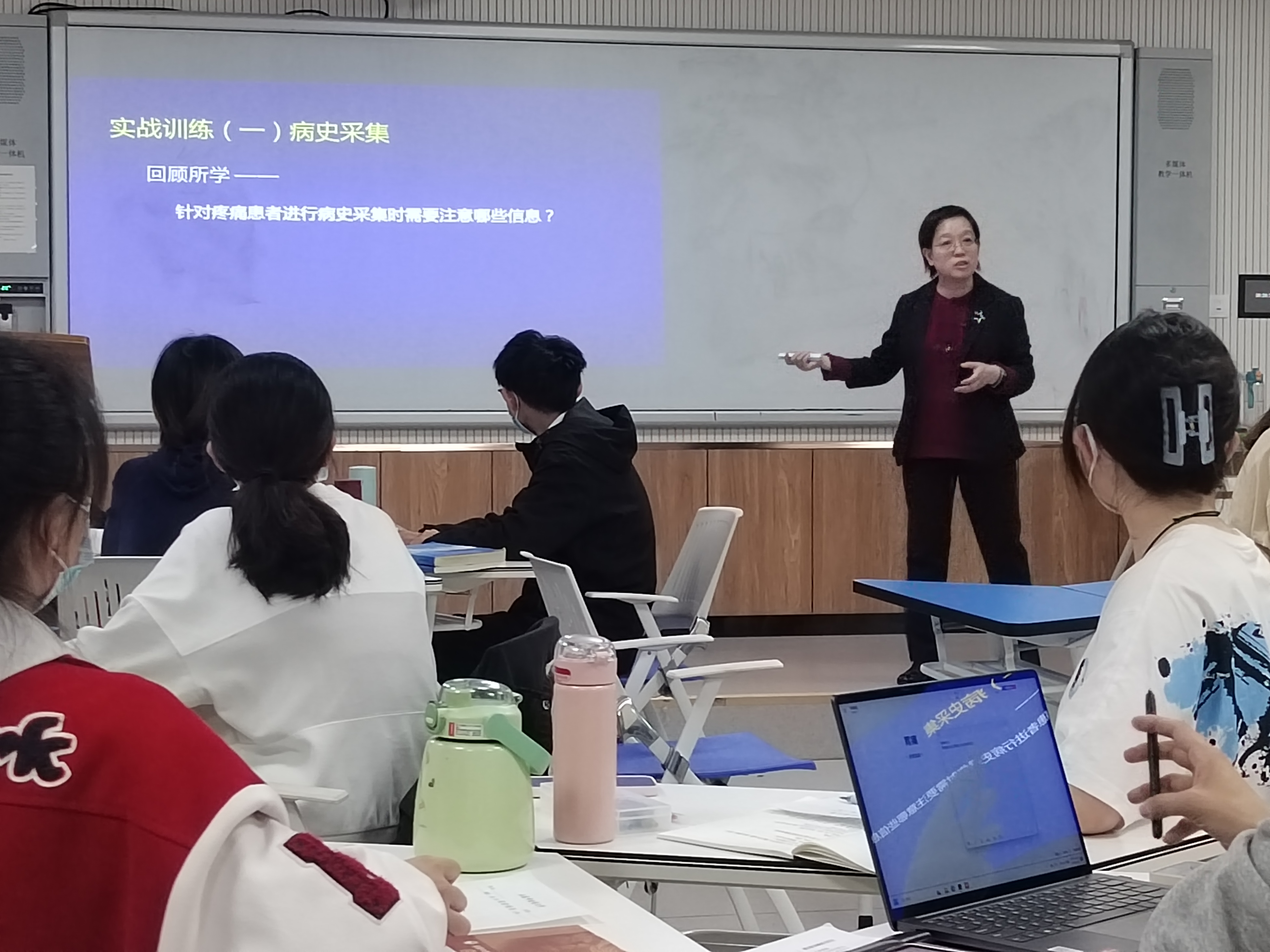 王欣教授,讲授的课程为《中医证治概要》。王欣老师首先借助翻转课堂学习数据,给学生反馈了课前自主学习情况,接着王欣老师改变传统课堂讲授模式,引入SP模拟临床真实情境,通过病史信息采集、门诊病历书写、病因病机分析等教学环节,将临床思维培养前置,在实战训练中引导学生进行研究型学习,完成知识的自我建构,切实提升学生的自主学习能力和中医思维能力。
