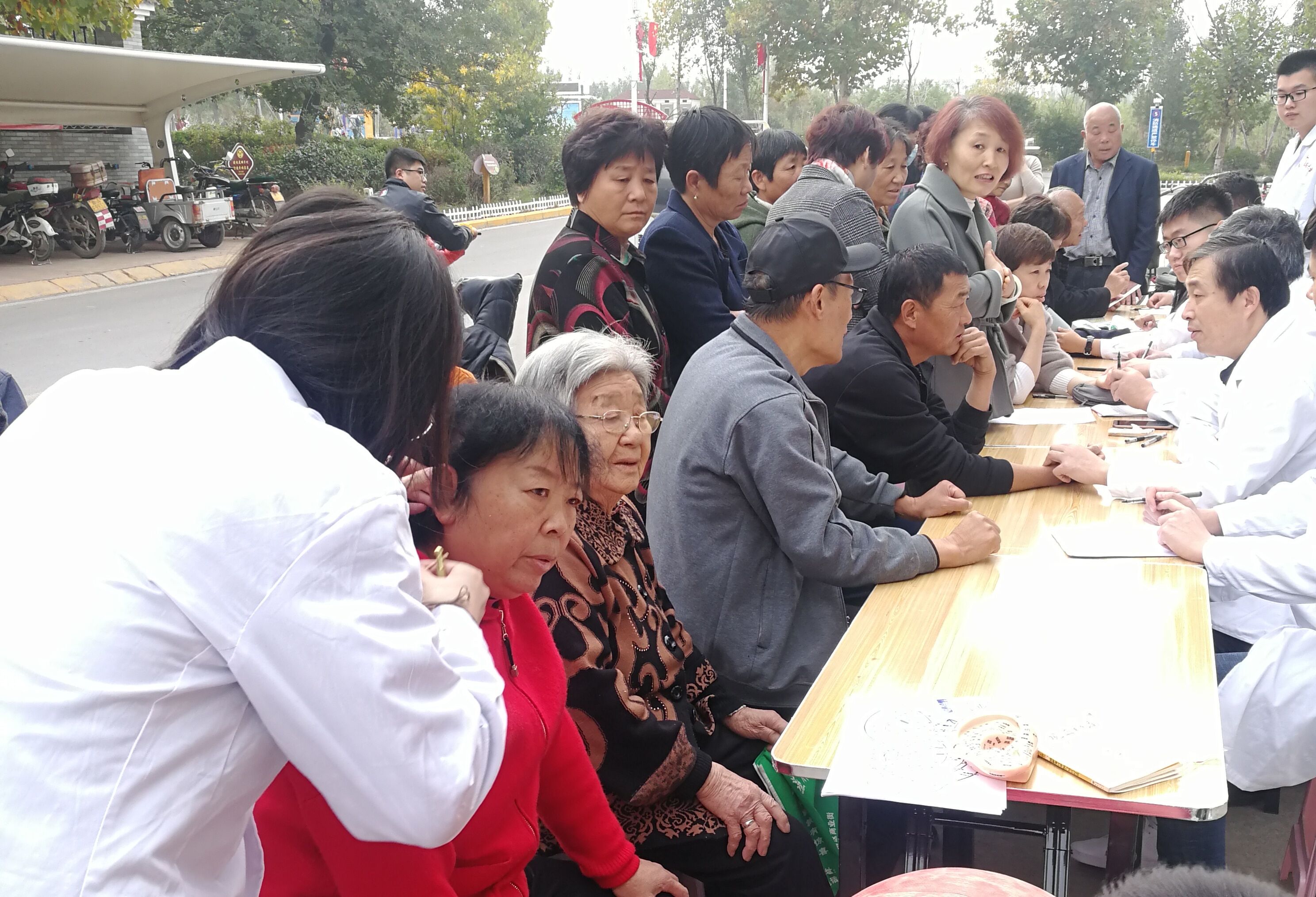 专家们为村民试脉开方,对高血压、糖尿病、颈椎病等常见病、多发病进行免费诊疗和悉心指导。