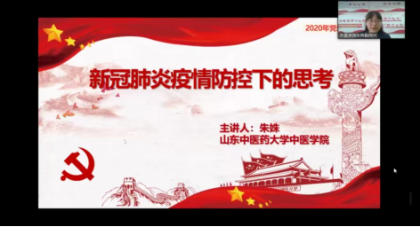 朱姝老师首先通过介绍武汉金银潭医院院长张定宇等三位抗疫一线战士的事迹,结合我校贾新华副院长支援黄冈抗疫的真实故事,引导同学们对疫情下自己责任和担当进行思考,指出在国家需要时,共产党员应有责任与担当,要争做表率,攻坚克难。课程第二部分,朱老师以主流媒体的报道为例,为同学们展示了中医药在抗击疫情中的重要作用,并从历史的角度,阐释了中医药成效的必然性,鼓励同学们在思想上要坚定中医药文化自信。朱老师以习近平总书记讲话精神与“厚德怀仁,博学笃行,传承创新”的校训结合,指导同学们从行动上做一个真正合格的中医药人。课程的最后,朱老师从“怀大慈恻隐之心、为医者先行之率、成至精至微之事、走创新发展之路”四个方面,表达了对新时代中医药学子的殷切期望。