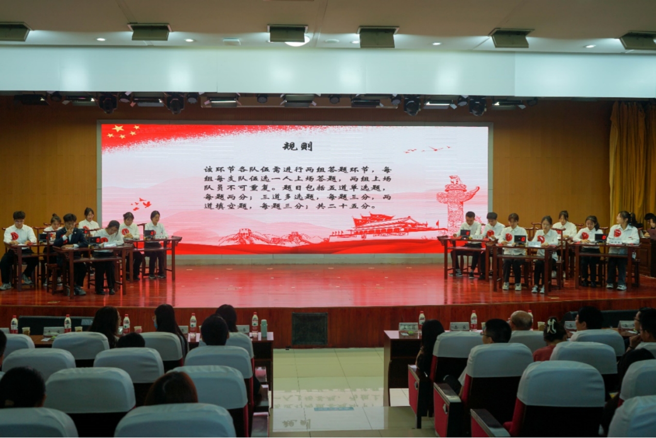 通过知识测试、评审打分,最终选拔推荐出14支队伍进入决赛。决赛包括晋级赛,抢答赛,主题演讲三个环节。进入第三环节的选手们分别围绕“党的先进性”“如何践行习近平总书记对青年的殷切希望”“作为新时代中医人,如何理解并做到传承中华优秀传统文化”“当代青年如何为中国式现代化建设贡献自己的青春力量”开展主题演讲。特聘请马克思主义电子试玩
