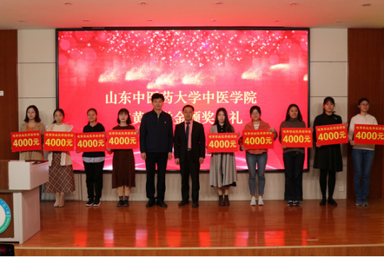 负责人以及全体辅导员,岐黄奖学金获奖学生,2019级新生代表参加颁奖典礼。