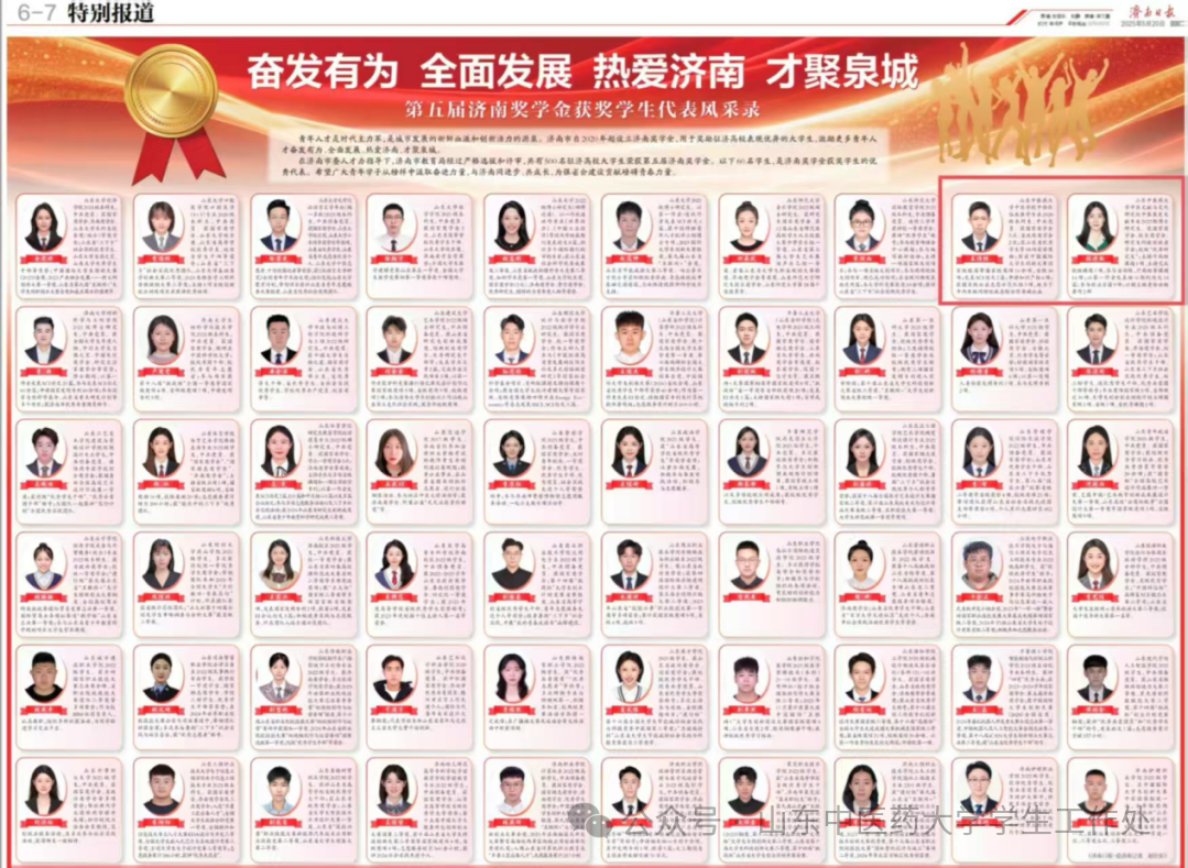 此次我校学子在“济南奖学金”评选中取得优异成绩,充分展现了学校在人才培养、学术引领和服务地方发展方面的综合实力。未来,学校将继续坚持以立德树人为根本任务,深入推进教育教学改革,持续提升中医药拔尖创新人才的培养质量,为国家中医药事业发展和新时代社会主义现代化强省会建设贡献更多智慧与力量。