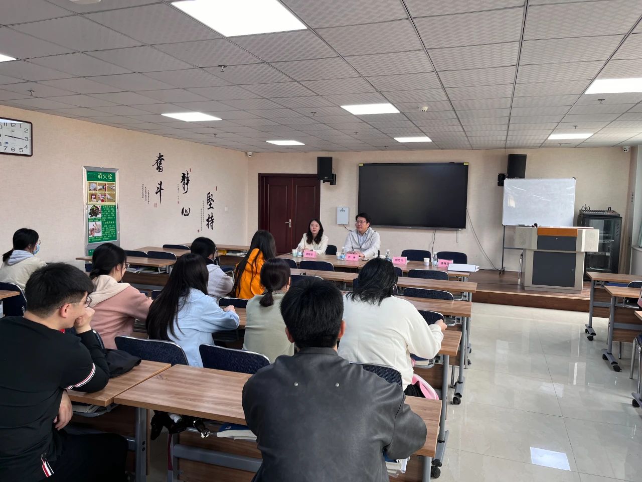在和实习学生交流过程中,芦琳、郭芳伶认真听取了学生的职业规划和就业需求,有针对性地给予指导和帮助,引导学生们树立正确的就业观、择业观。芦琳勉励同学们要珍惜实习机会,夯实专业技能,拓宽行业视野,同时牢记“厚德怀仁,博学笃行”的校训,以大医精诚的精神,踏实学好专业课程,扎实做好实习工作,恪守医德医风医道,修医德,行仁术。郭芳伶鼓励学生树立科学的就业观,主动适应行业需求,提升职业竞争力,为未来职业发展奠定坚实基础。