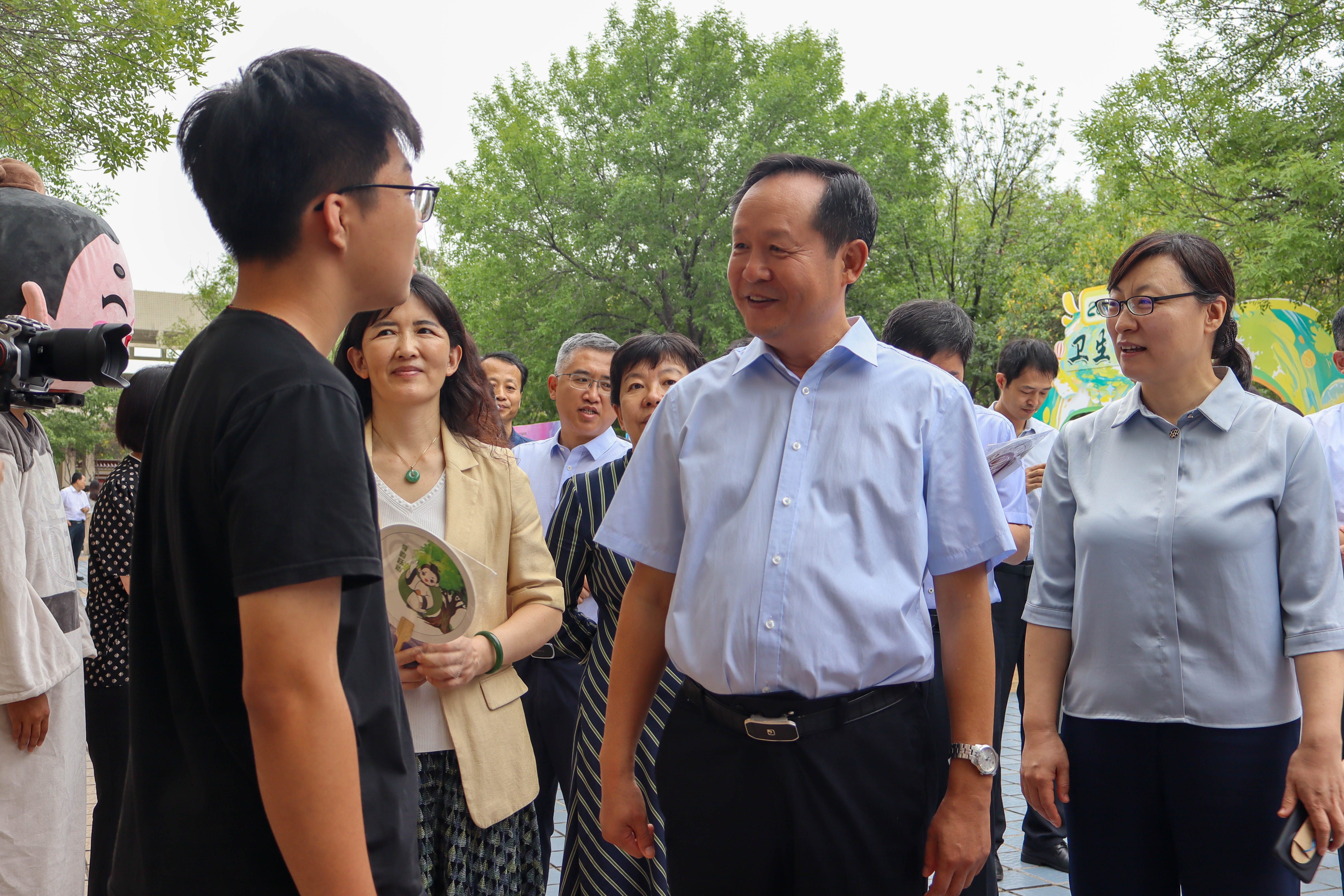 校党委书记张立祥,校长李可建,党委副书记艾邸,纪委书记、监察专员王丽丽,副校长王琳、张玉龙,党委委员、党委组织部部长常现兵,党委委员、宣传部部长陈众,党委委员、统战部部长朱姝来到迎新现场来pg电子模拟器