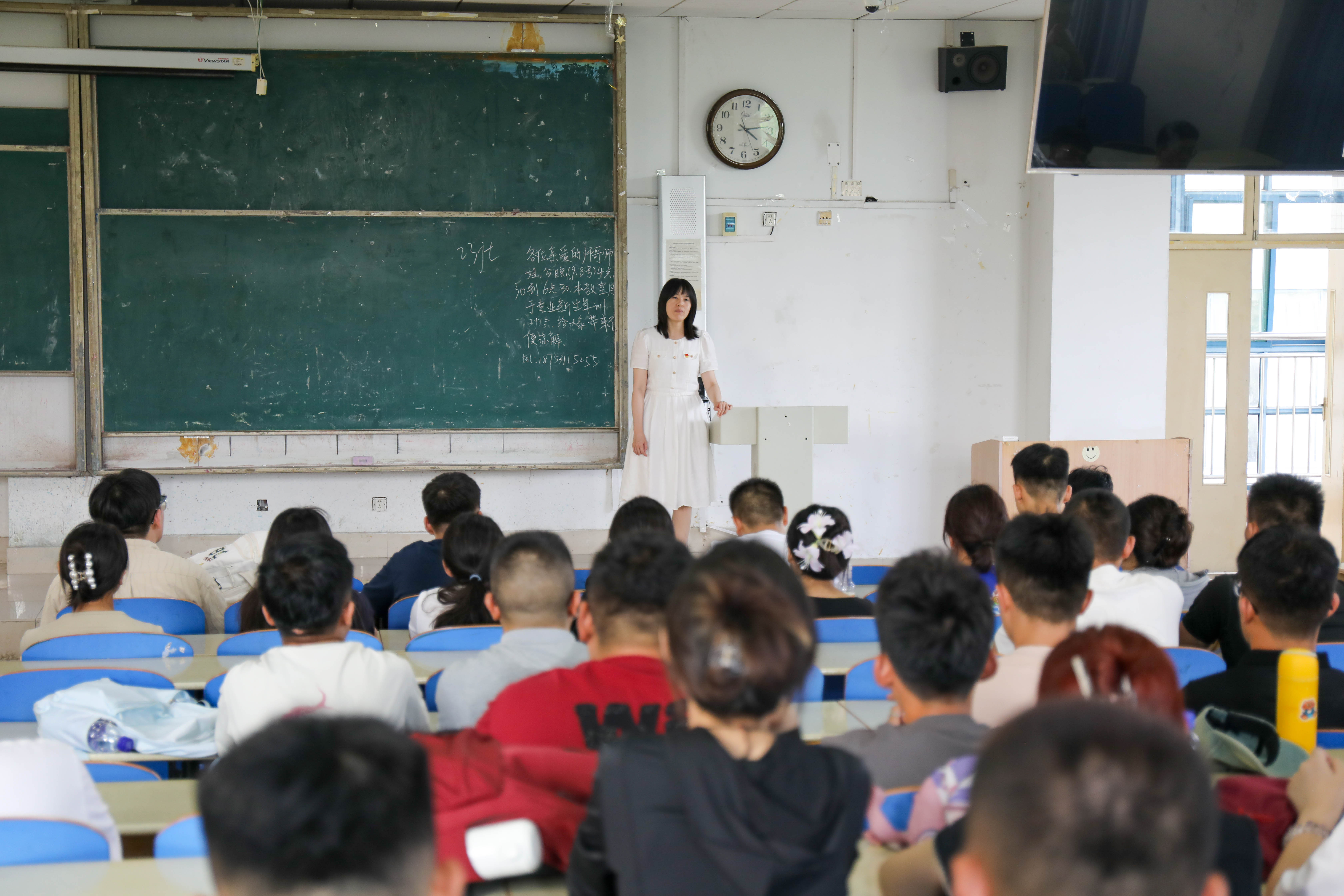芦琳深入新生宿舍,与学生们亲切交谈,对同学们提出的问题一一耐心解答;勉励同学们及时调整状态,做好新学期学习规划,建立和谐友好的人际关系,以积极的心态和良好的面貌迎接新学期的校园生活。