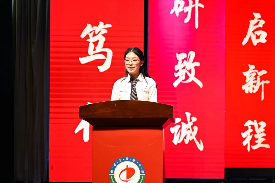 新生代表张馨月代表全体新生表达了初入医学殿堂的激动与憧憬,与全体同学共同许下青春之约。