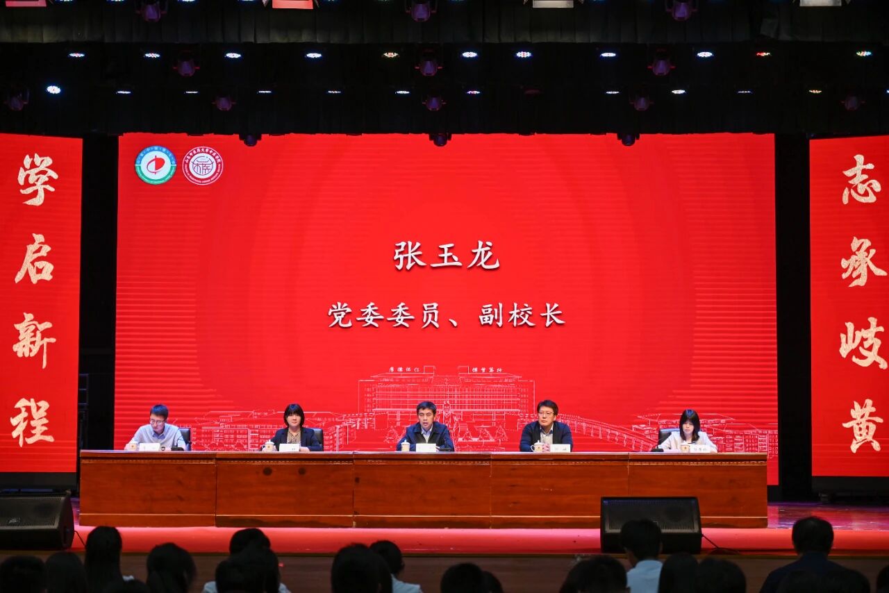 2025年新生入学教育在岐黄礼堂举行。校党委委员、副校长张玉龙出席。电子试玩