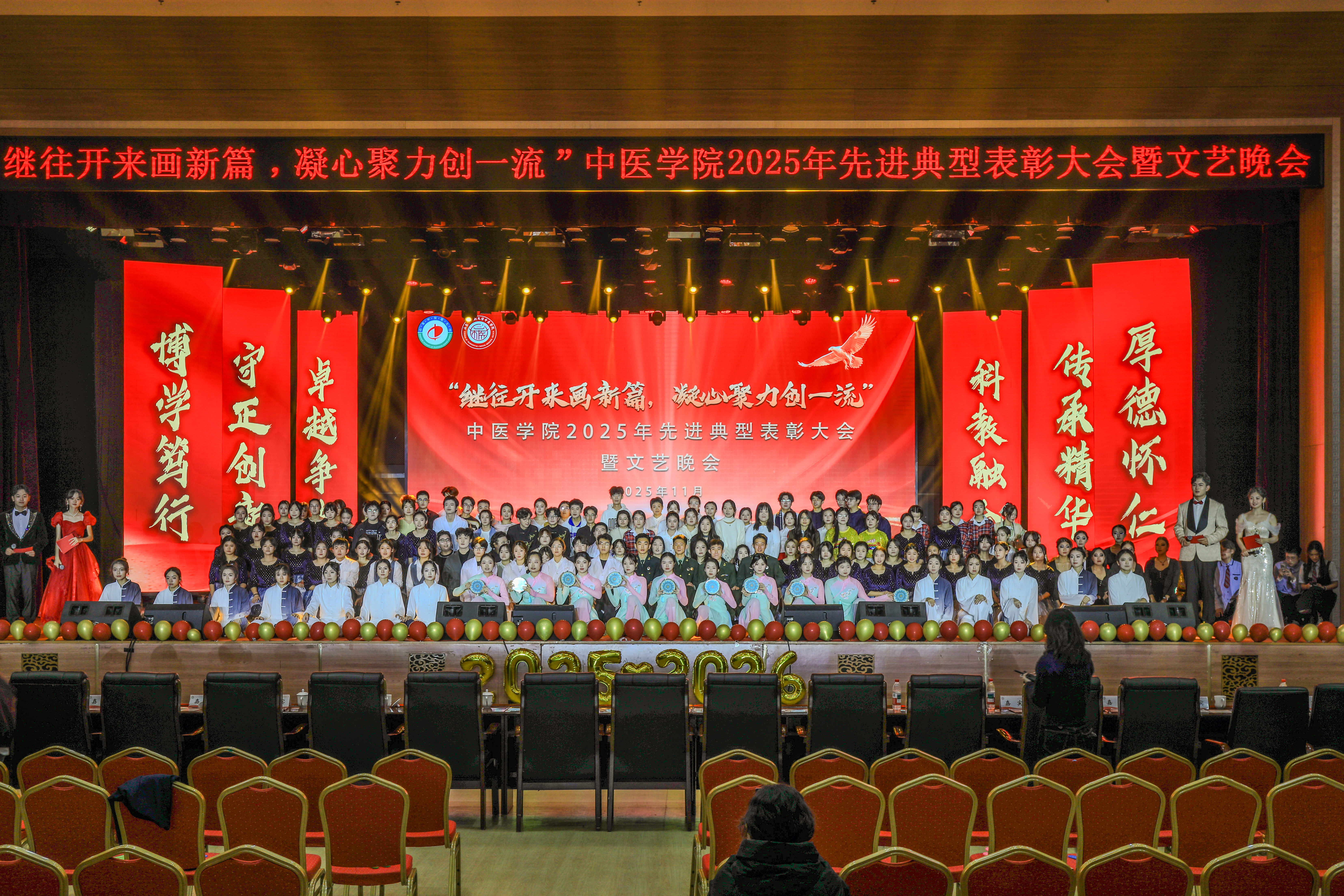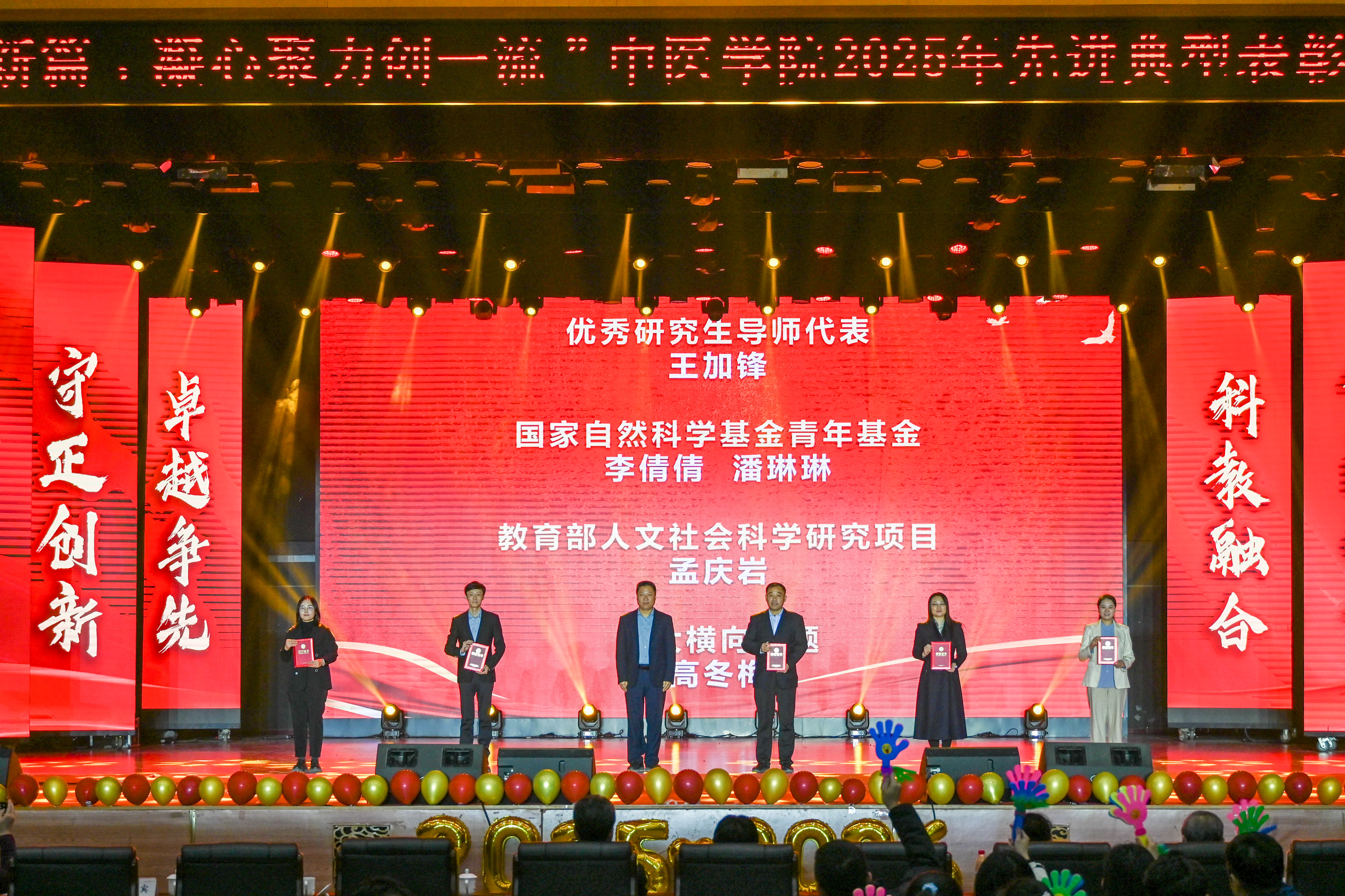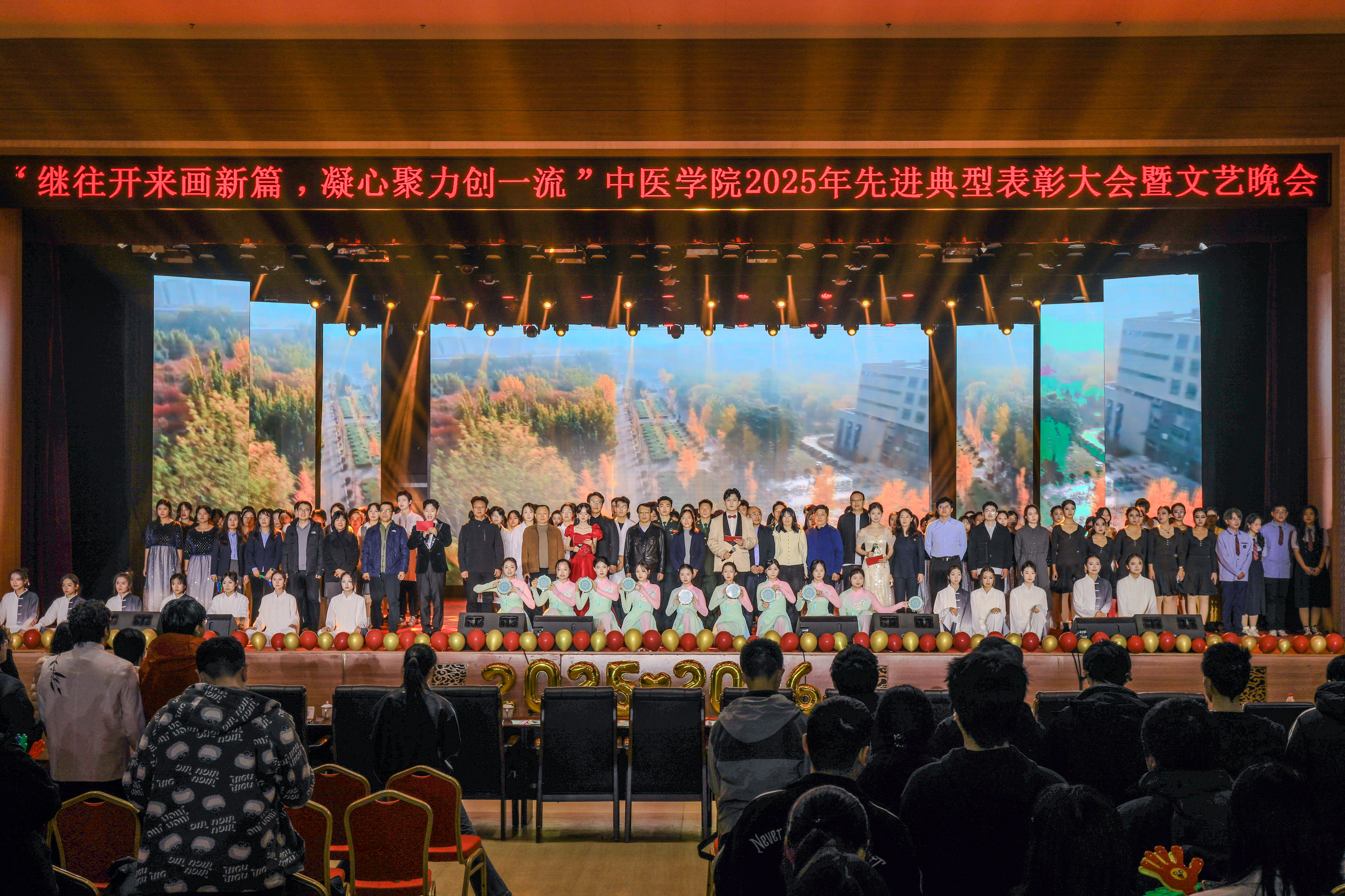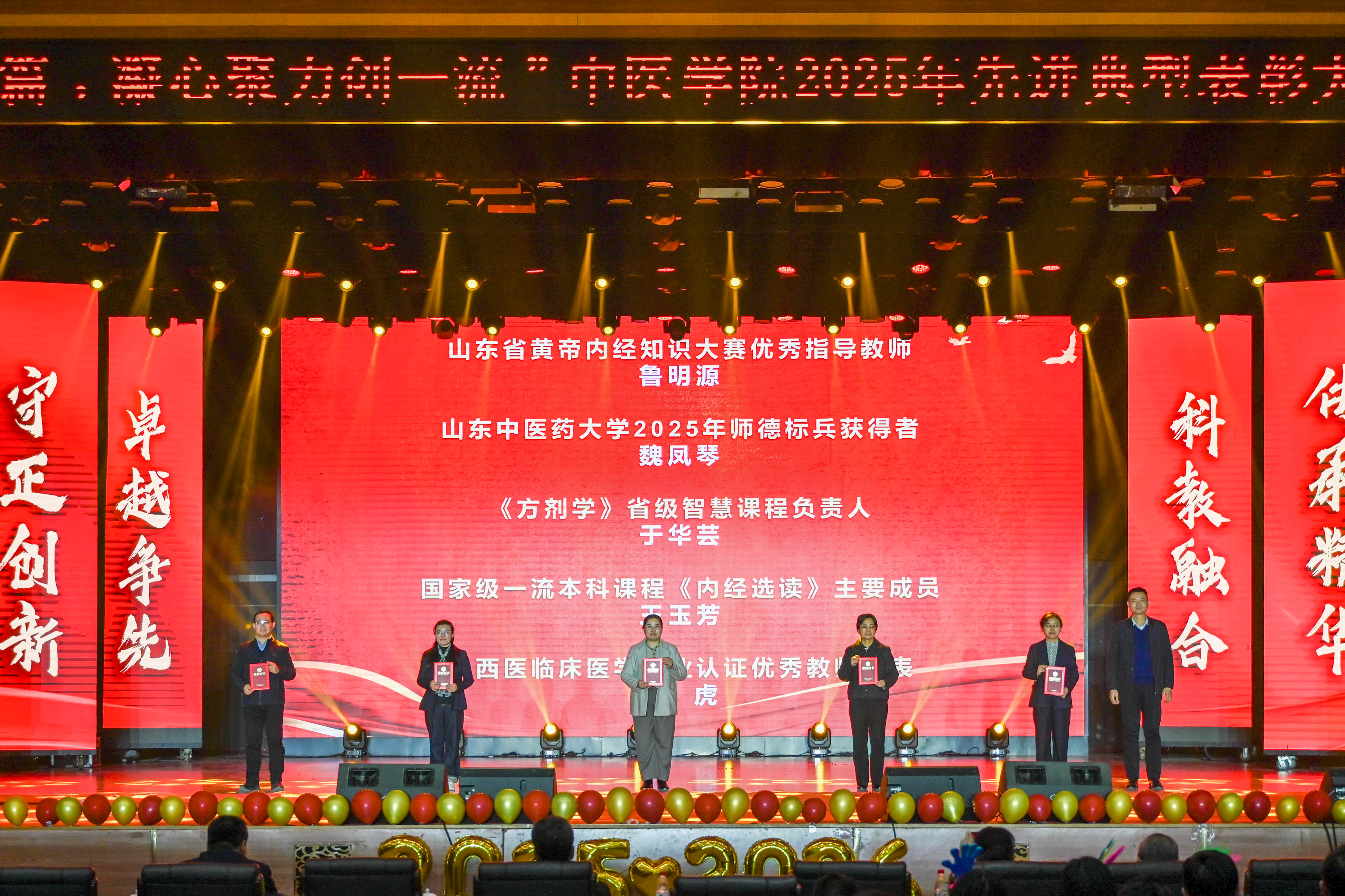 “继往开来画新篇,凝心聚力创一流”2025年先进典型表彰大会暨文艺晚会在长清校区岐黄礼堂举行。党委委员、副校长王琳,山东新中鲁中医医院院长李树沛出席活动并颁奖。