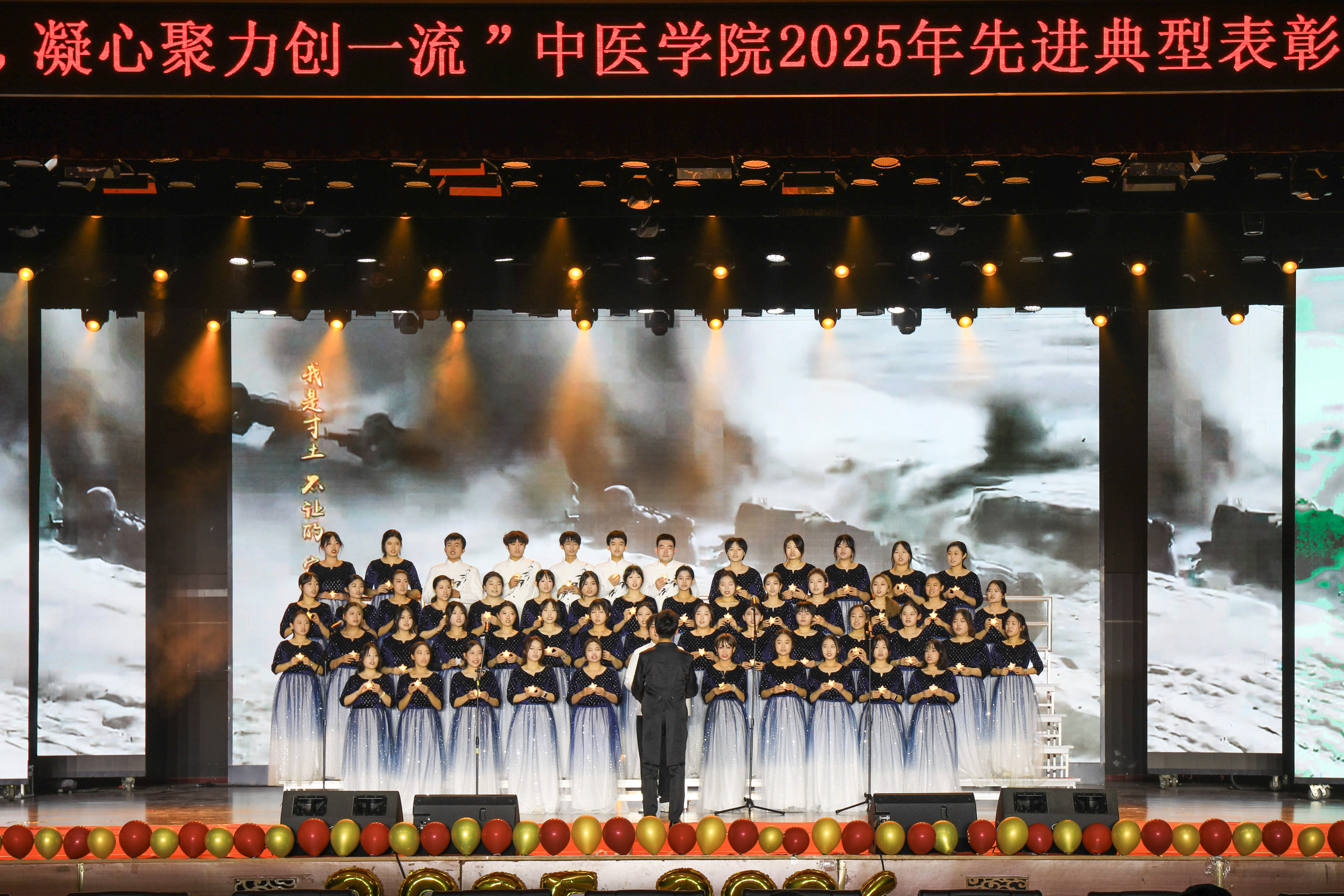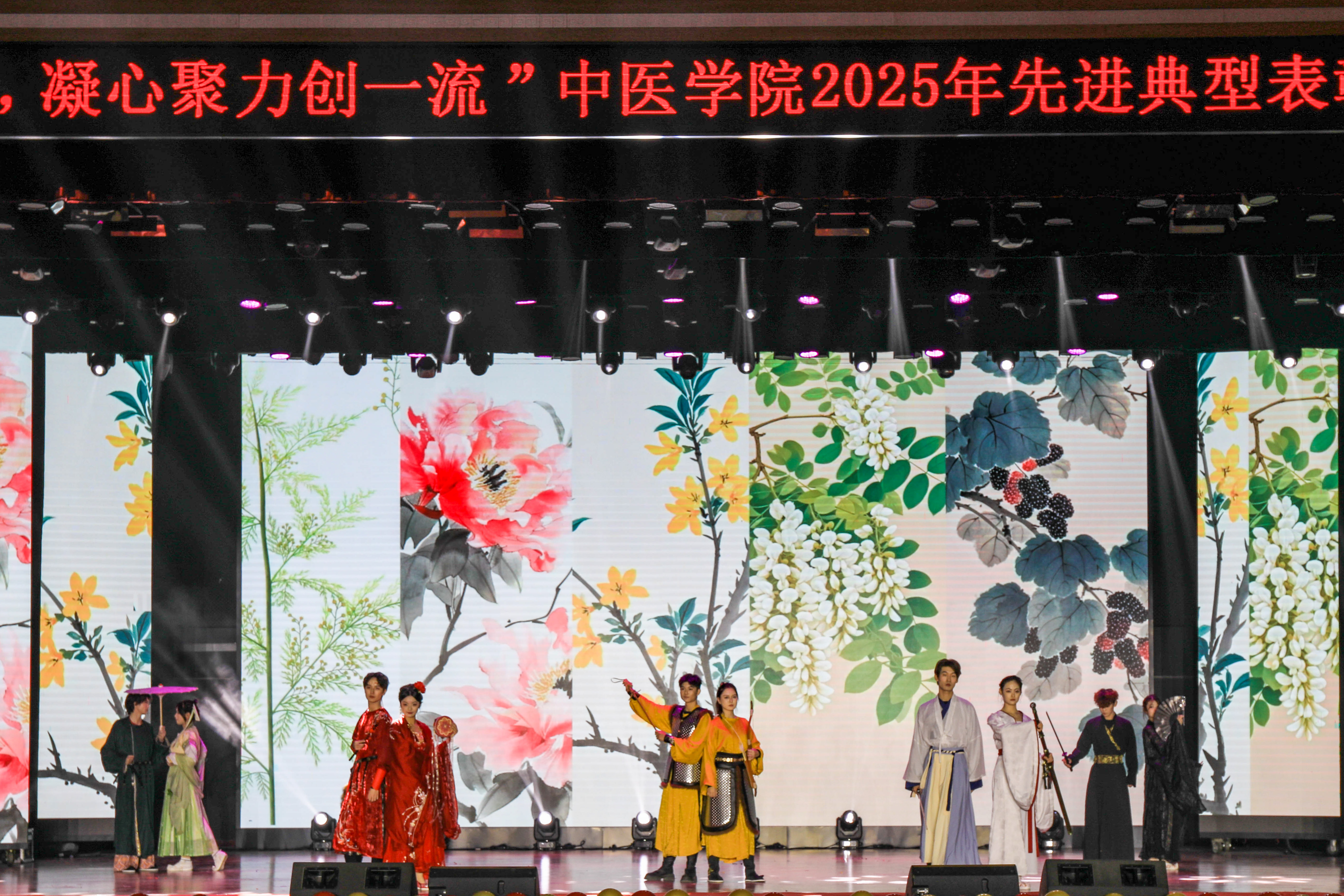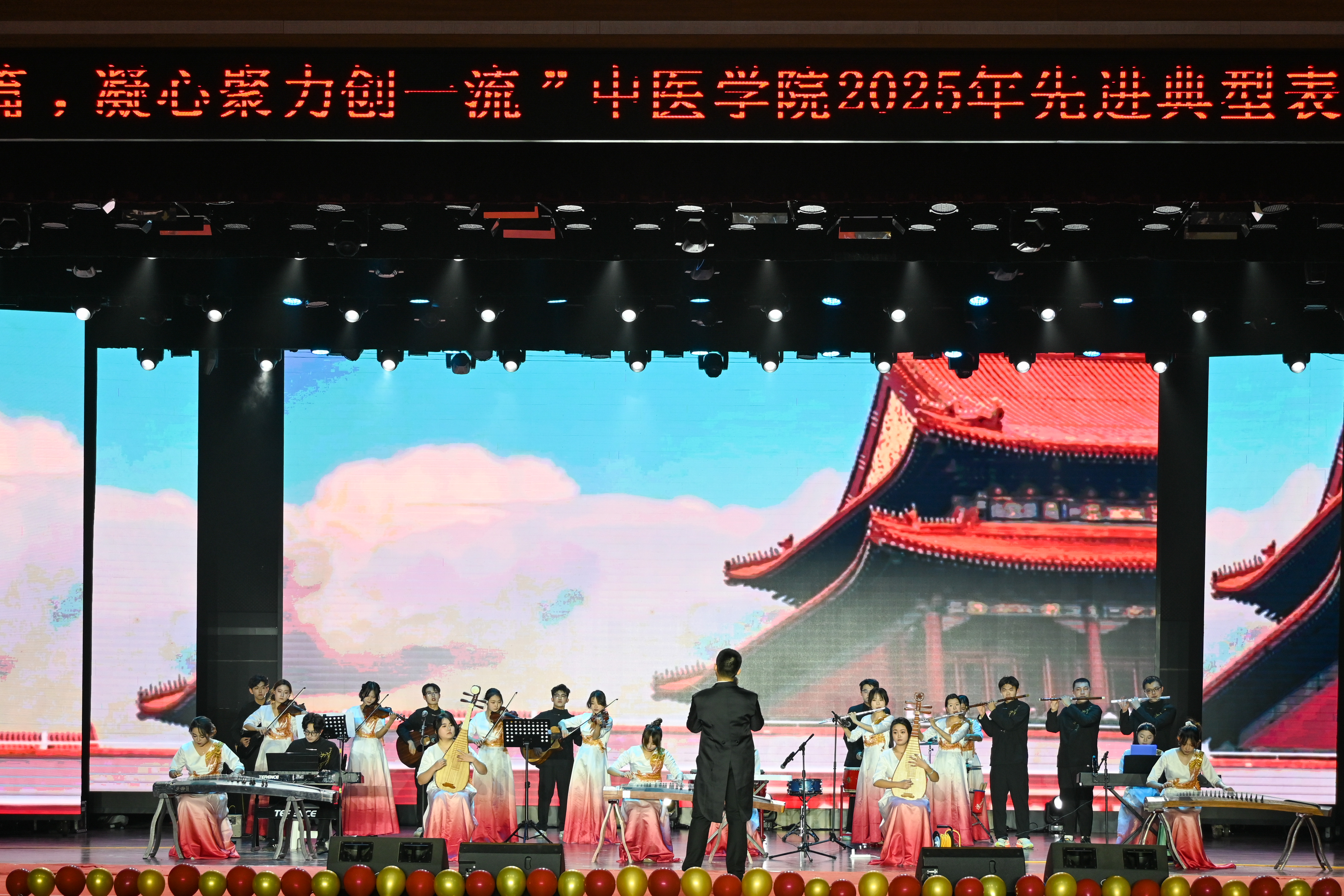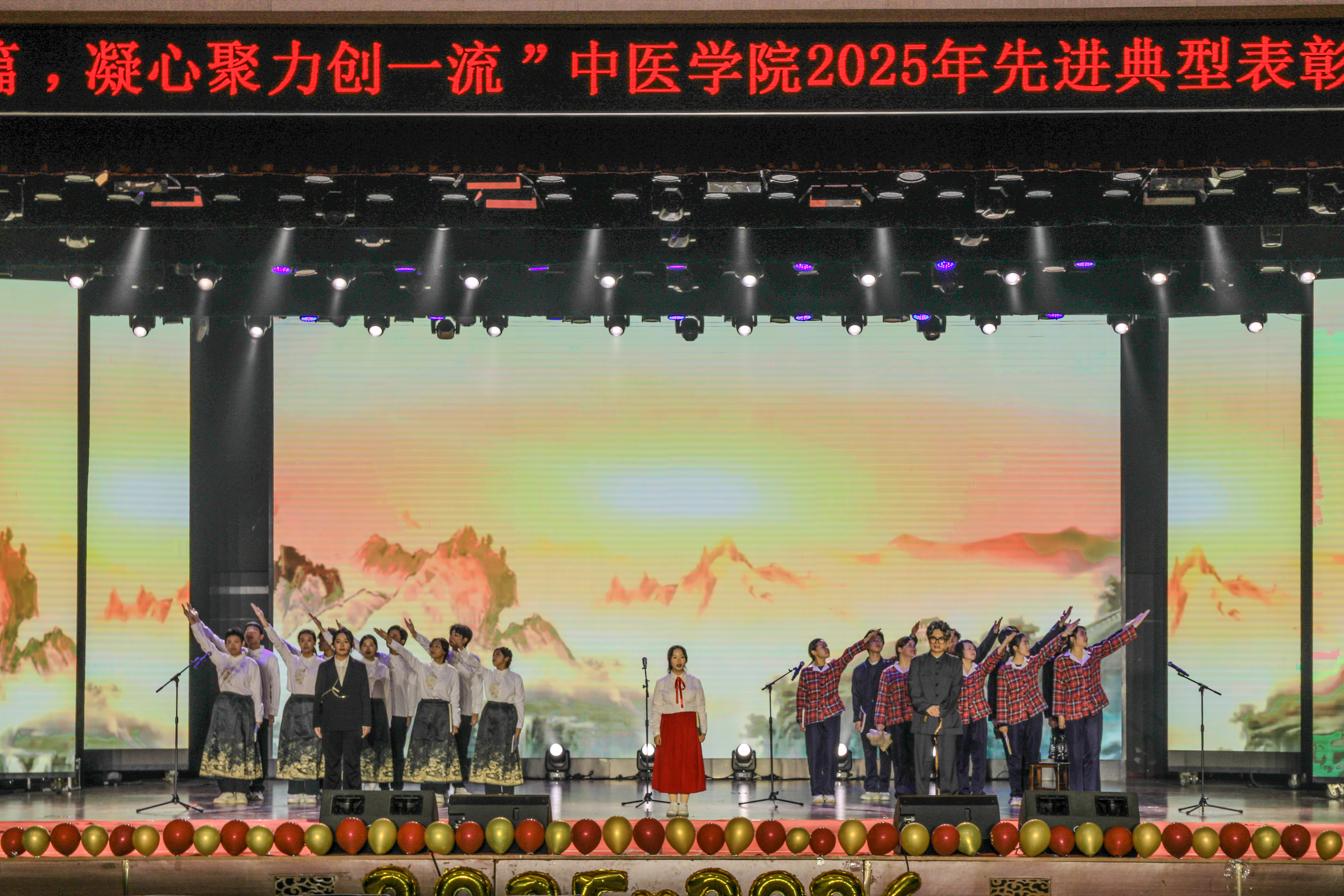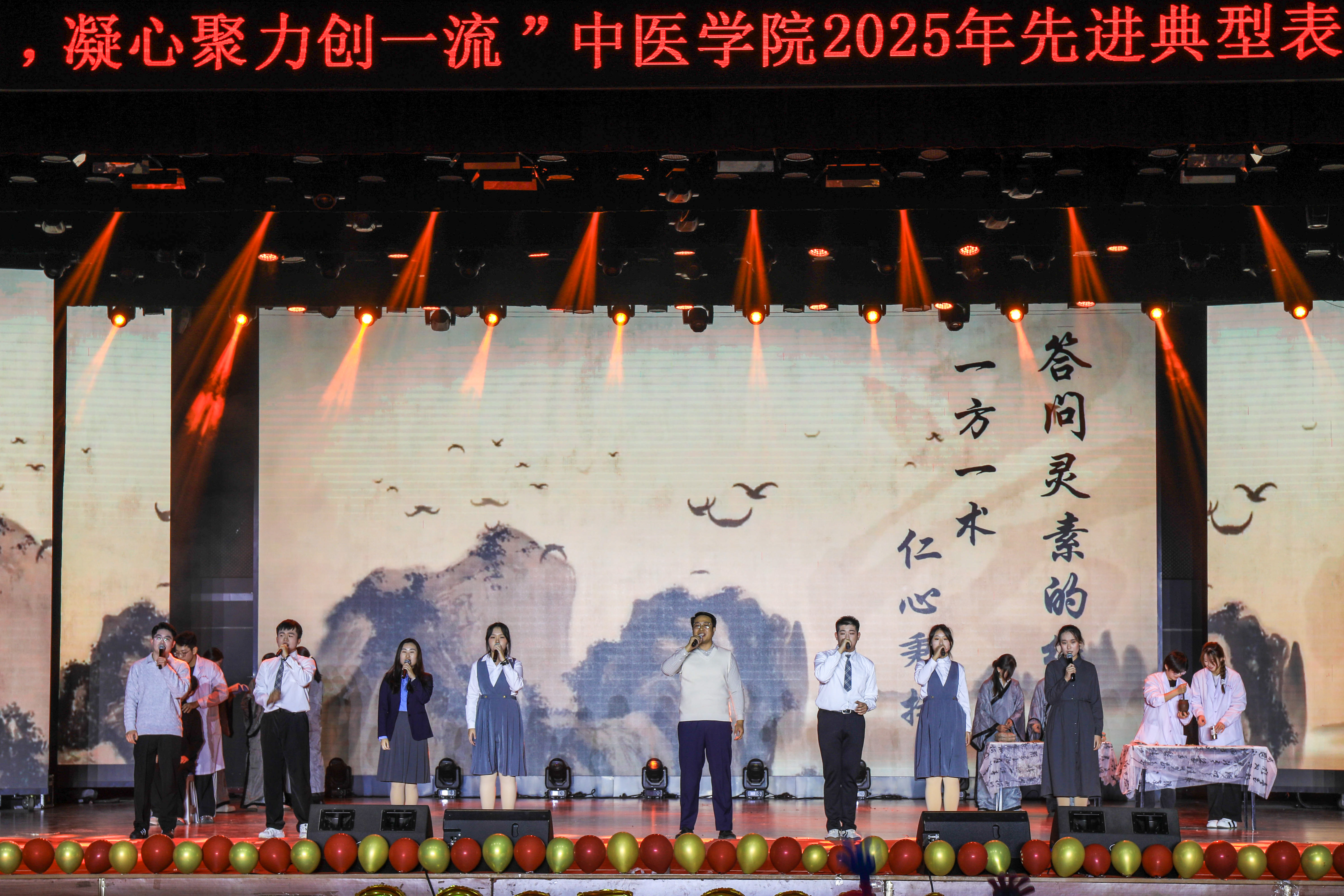 “继往开来画新篇,凝心聚力创一流”2025年先进典型表彰大会暨文艺晚会在长清校区岐黄礼堂举行。党委委员、副校长王琳,山东新中鲁中医医院院长李树沛出席活动并颁奖。