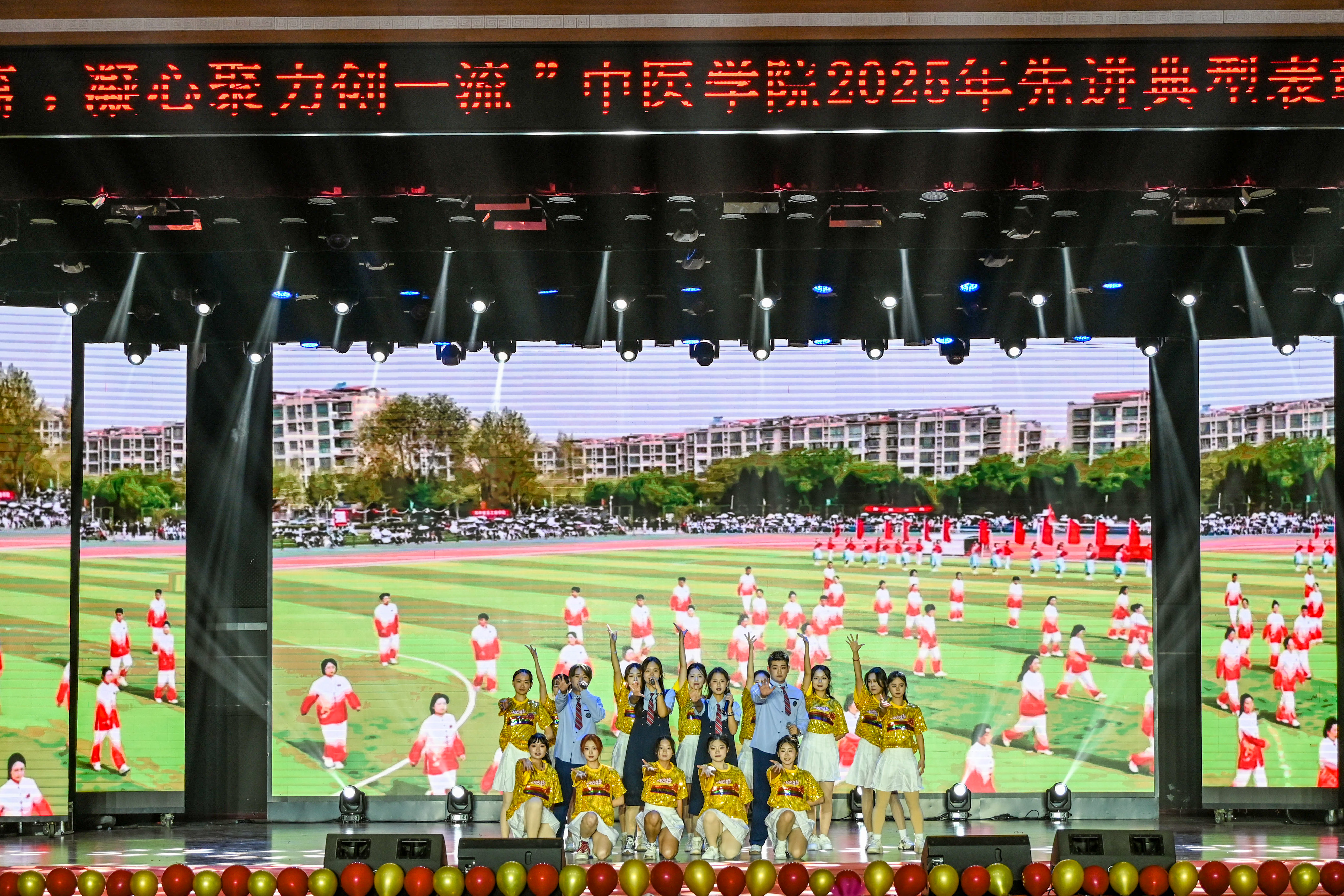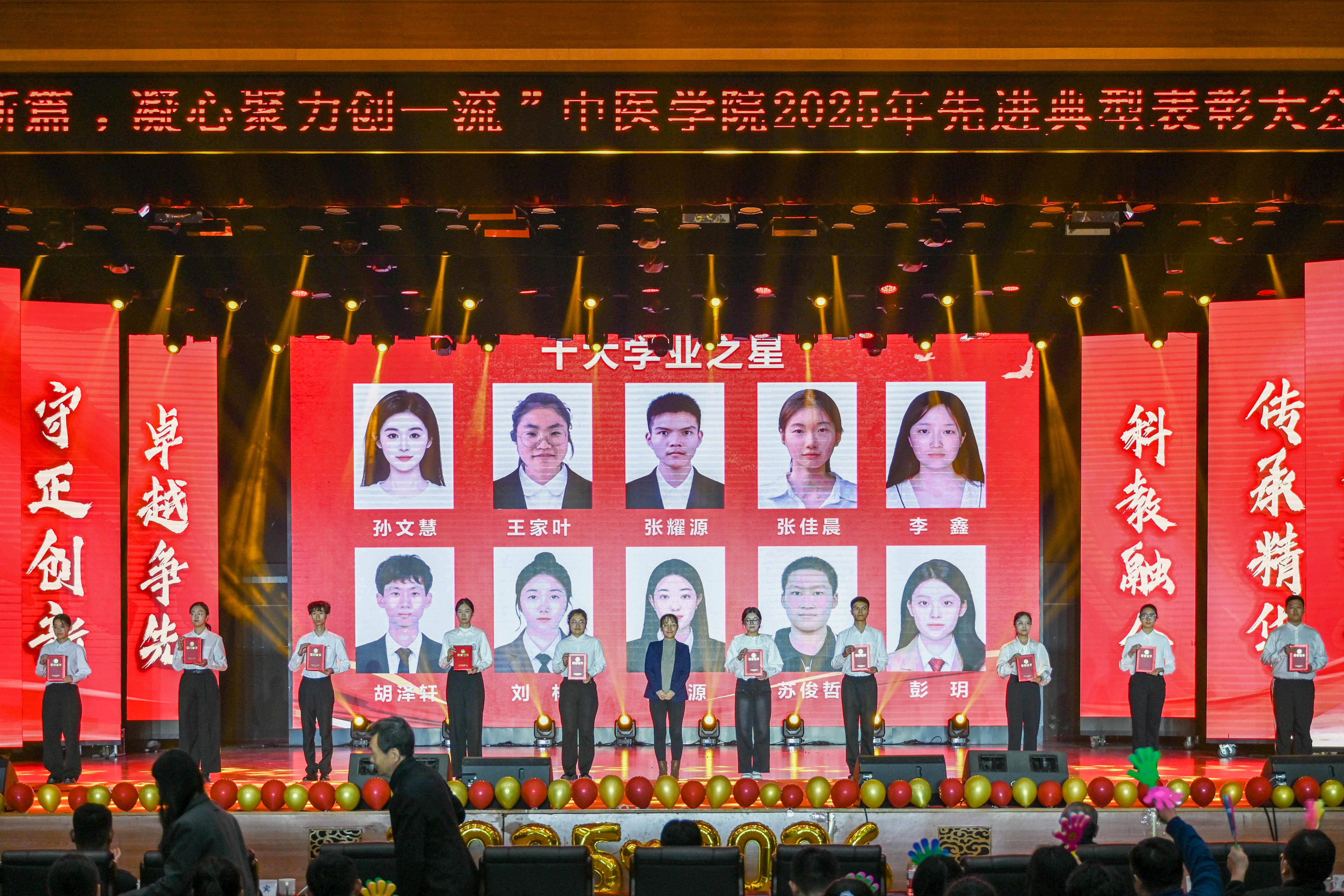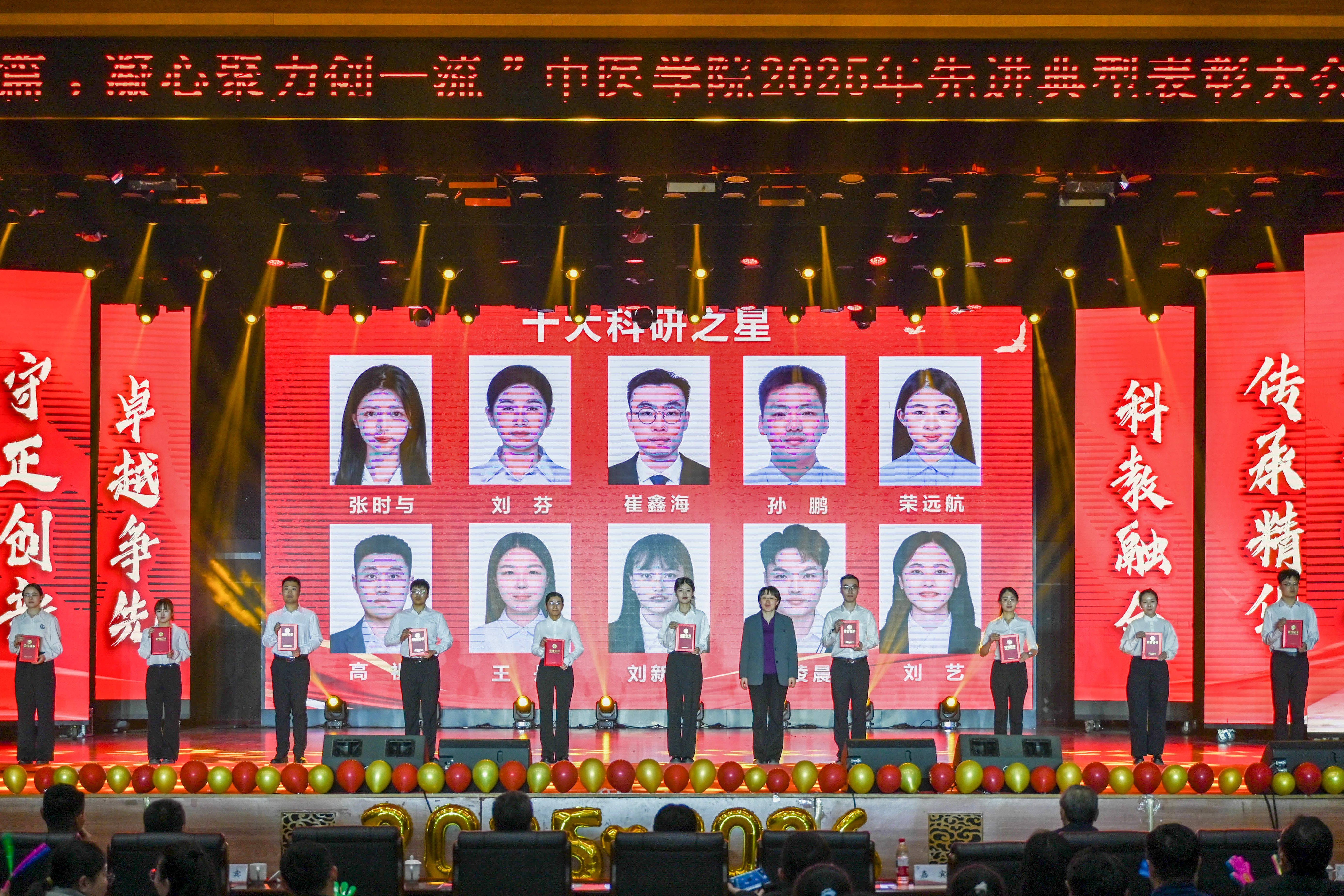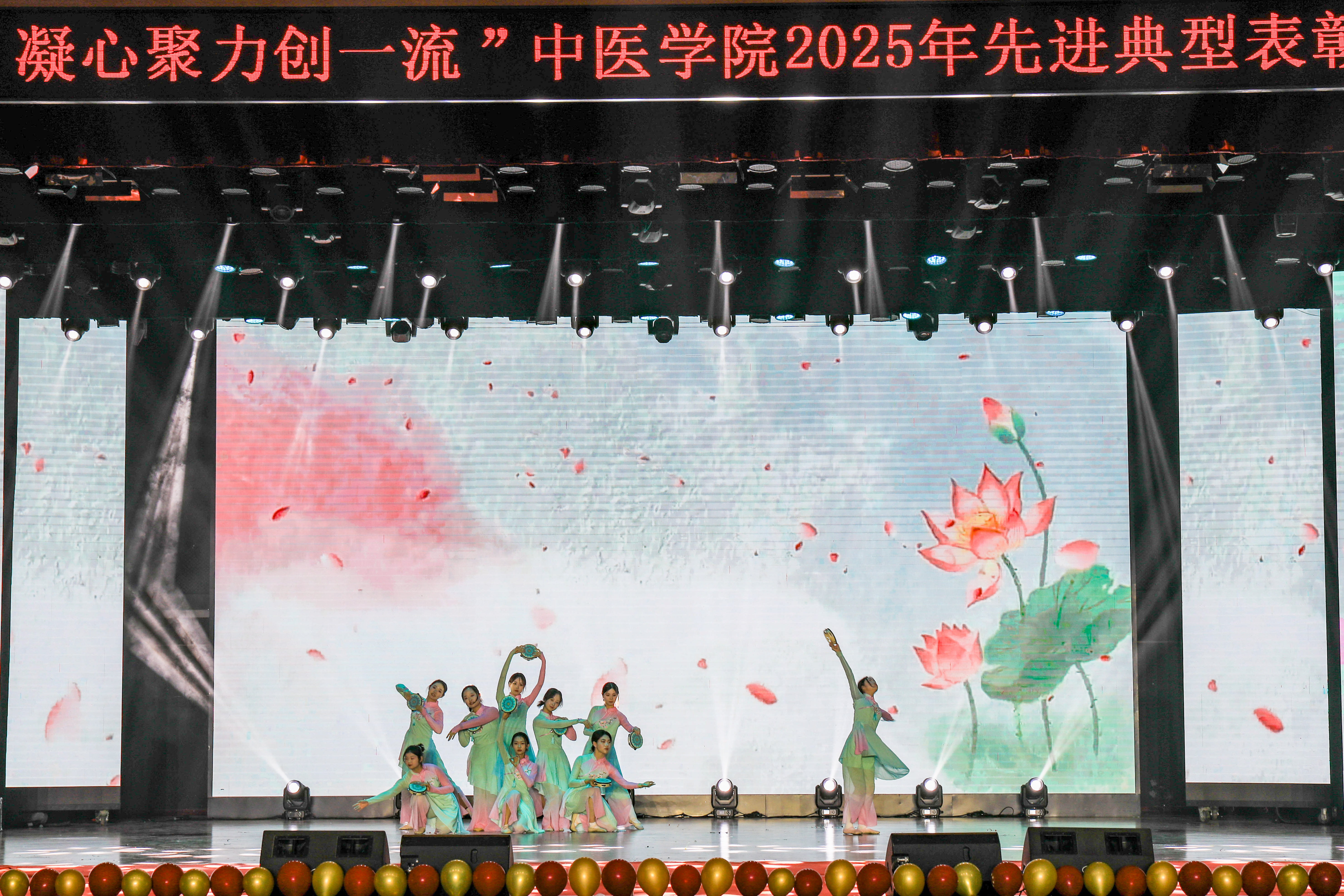 “继往开来画新篇,凝心聚力创一流”2025年先进典型表彰大会暨文艺晚会在长清校区岐黄礼堂举行。党委委员、副校长王琳,山东新中鲁中医医院院长李树沛出席活动并颁奖。