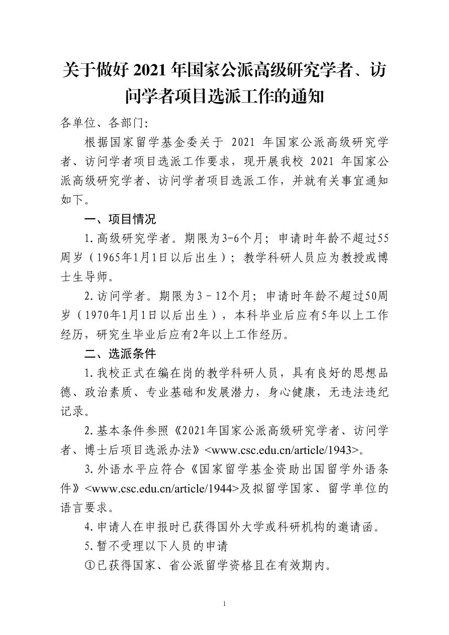 关于做好2021年国家公派高级研究学者、访问学者项目选派工作的通知.doc