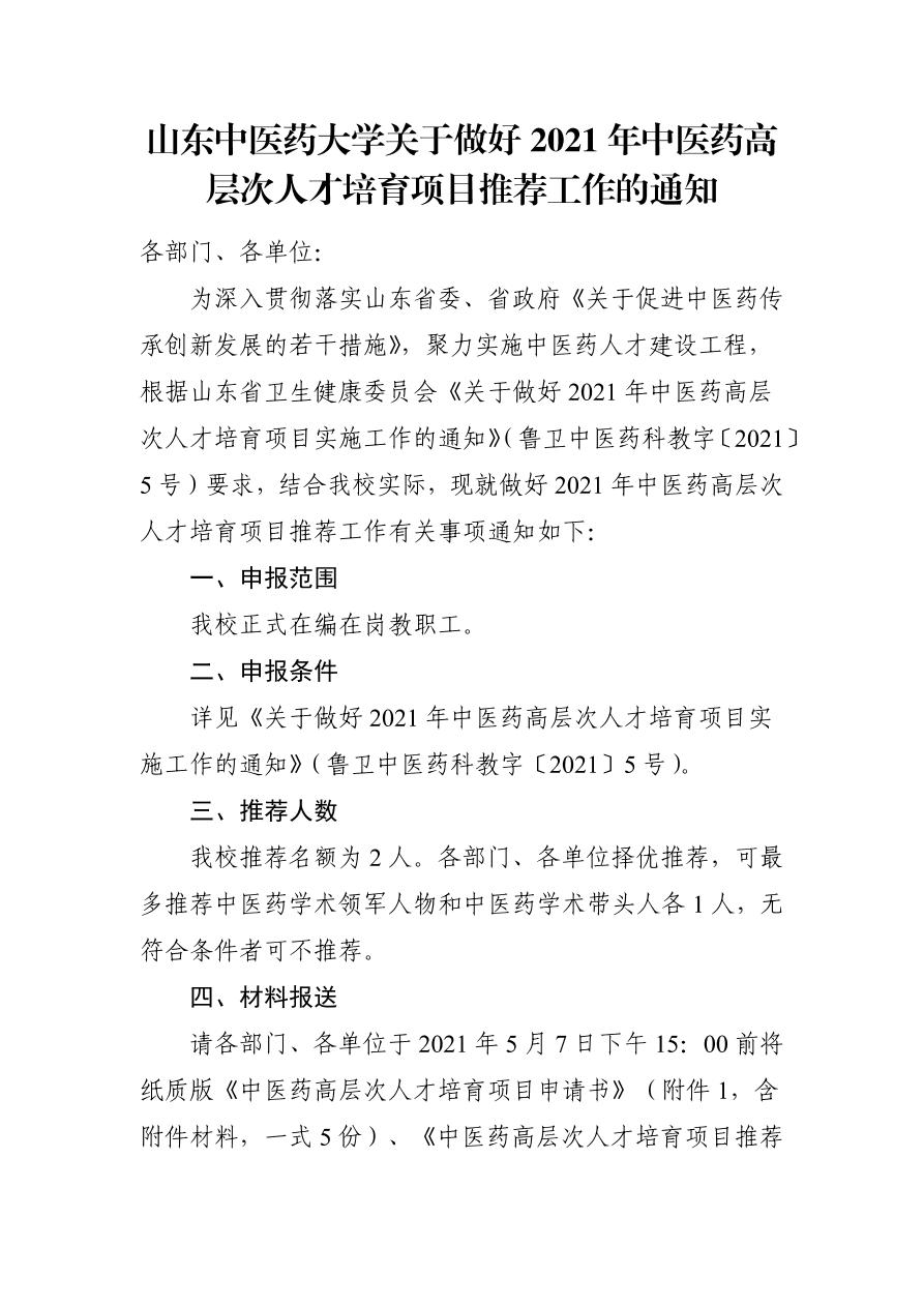 山东中医药大学关于做好2021年中医药高层次人才培育项目推荐工作的通知.pdf
