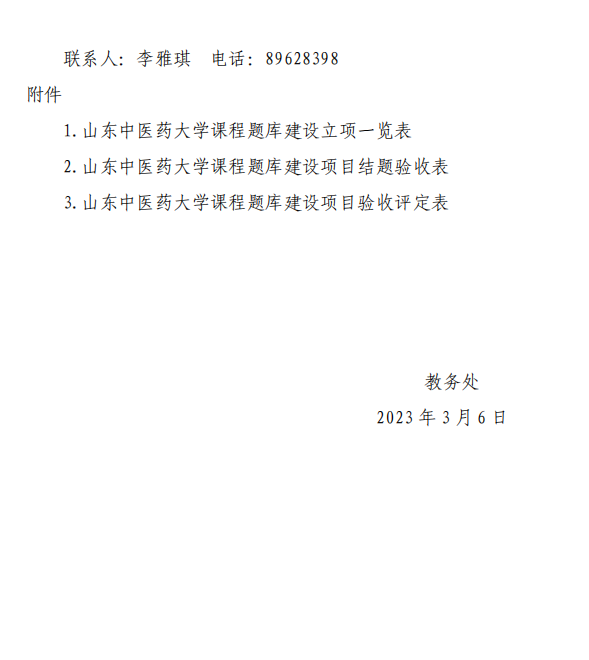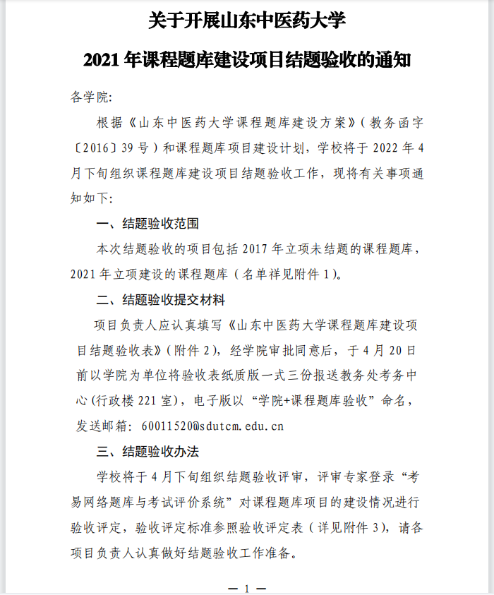 关于开展山东中医药大学 2021 年课程题库建设项目结题验收的通知