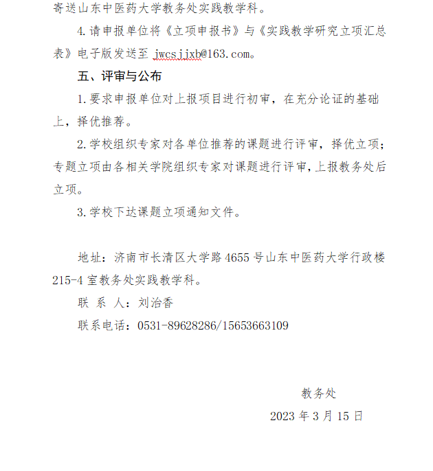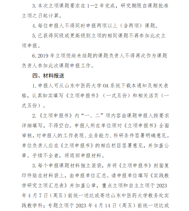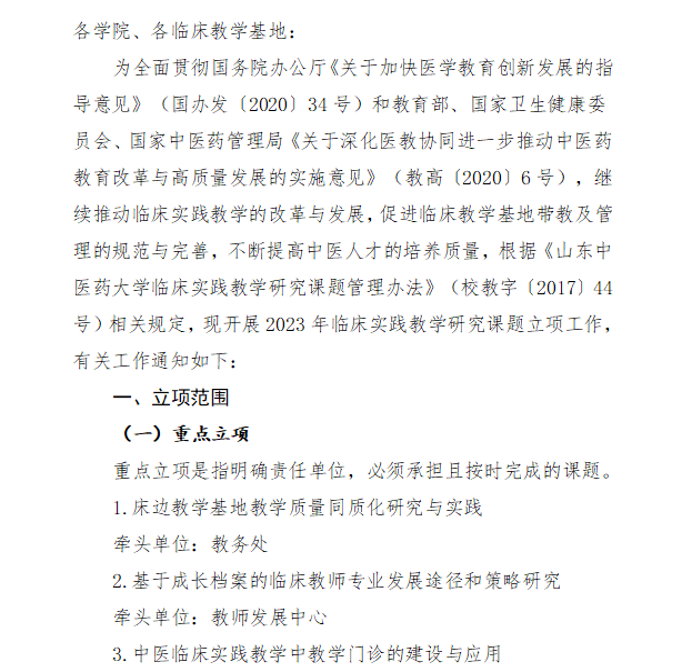 山东中医药大学关于组织2023年度临床实践教学研究课题立项工作的通知