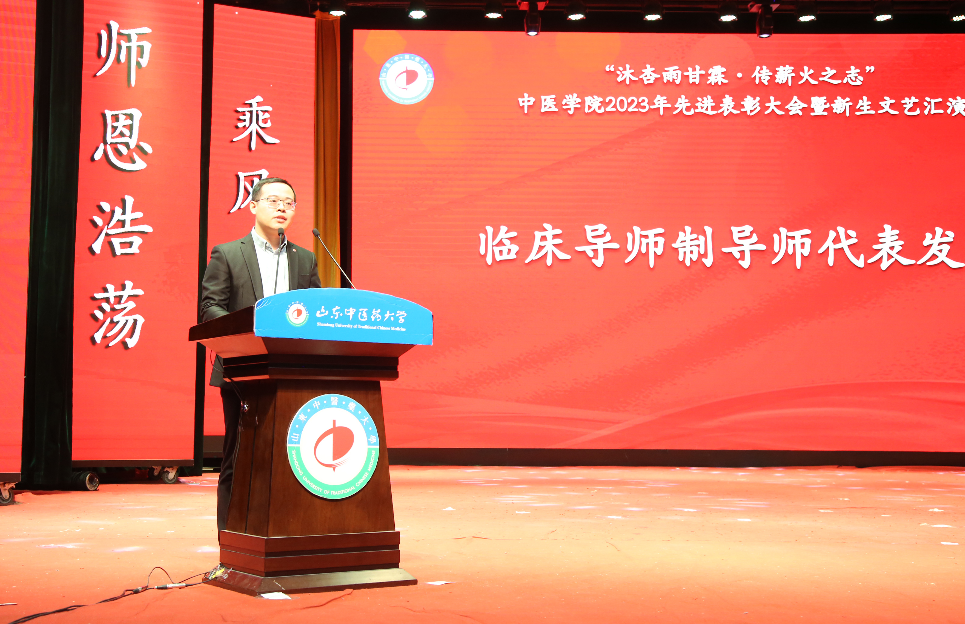 pg电子试玩 党委书记姜锡斌在致辞中回顾了电子试玩 的发展历程,总结了电子试玩 发展取得的成绩,并对未来中医人才的培养做出展望。重点阐释了“鲁源计划”和“本科生临床导师制”所取得的显著成效。他指出,电子试玩 在学校党委的坚强领导下,强化“三全育人”暨全环境立德树人工作机制,建立思政导师、学术导师和临床导师“三导师”制度,积极探索医学生培养新模式,于今年推出“鲁源计划”,创新性打造就业服务新路径,并在此基础上试行本科生临床导师制,搭建学生临床社会实践平台,反响热烈,效果显著。下一步,电子试玩 将持续提高精准化工作水平,建设一站式服务育人体系,以优异的成绩迎接学校第六次党代会胜利召开!