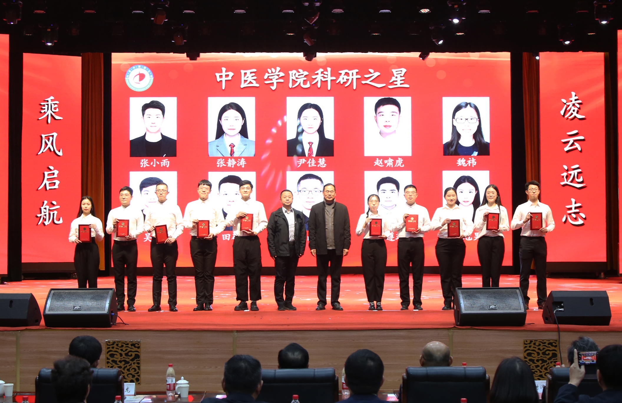 大会表彰环节由电子试玩 党委副书记芦琳主持。首先导师代表田虎、学生代表孙百合分别上台交流发言,畅谈对临床导师制的认识与体会。随后为临床导师颁发聘书、为联合培养单位授牌。大会还表彰了电子试玩 “十大自强之星”“十大学业之星”“十大科研之星”“十佳先进班集体”“优秀学生党支部”等先进典型代表。