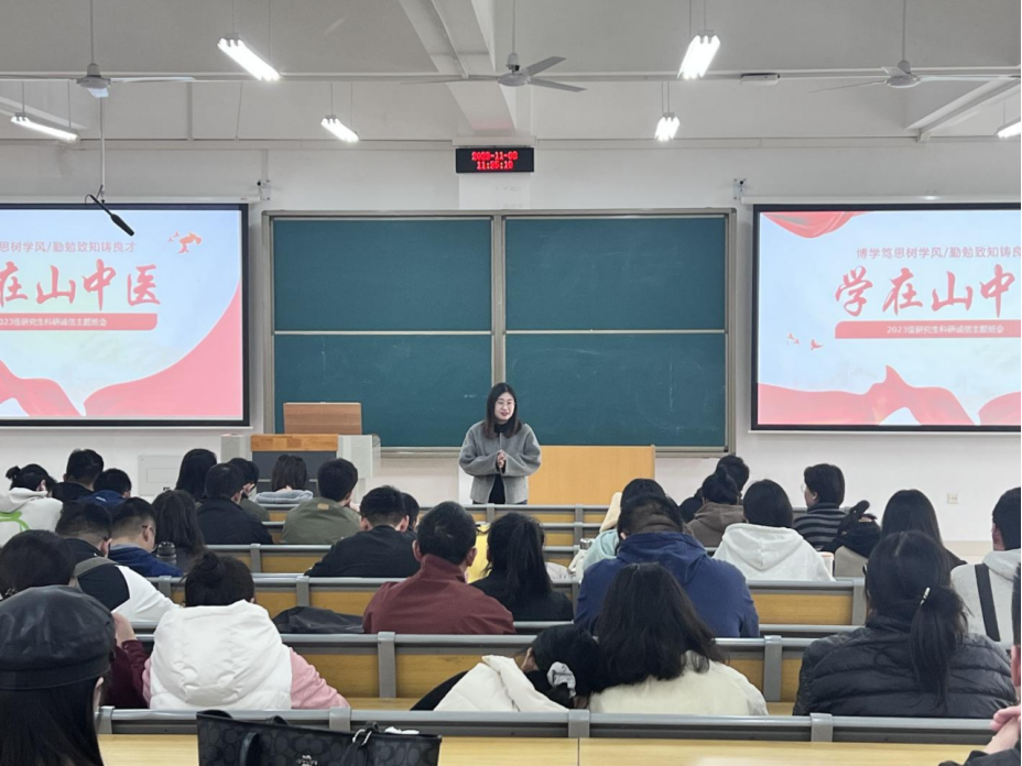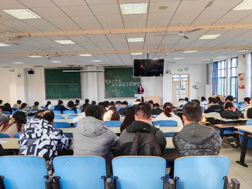 为深入学习贯彻习近平新时代中国特色社会主义思想和党的二十大精神,落实《关于进一步加强学风建设工作的通知(校学字〔2023〕14号)》文件要求,推进学校思政工作新形态构建,传承山中医“勤学、善思、实践、创新”学风,擦亮“学在山中医”品牌,植建育人“生态雨林”,持续抓好学风建设,pg电子试玩 举办“学在山中医”学风建设主题班会。