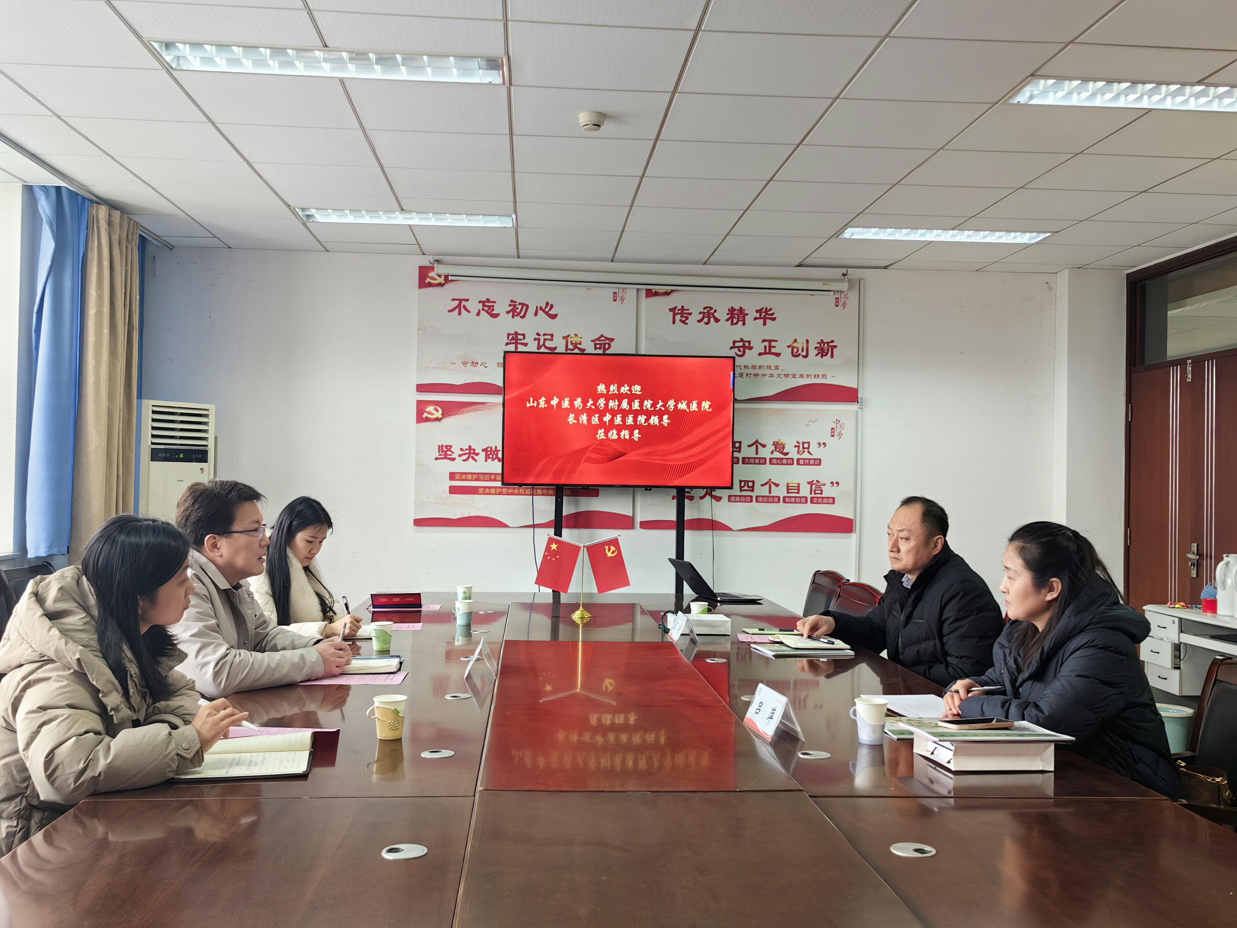 与山东中医药大学附属医院大学城医院、长清区中医医院座谈交流。