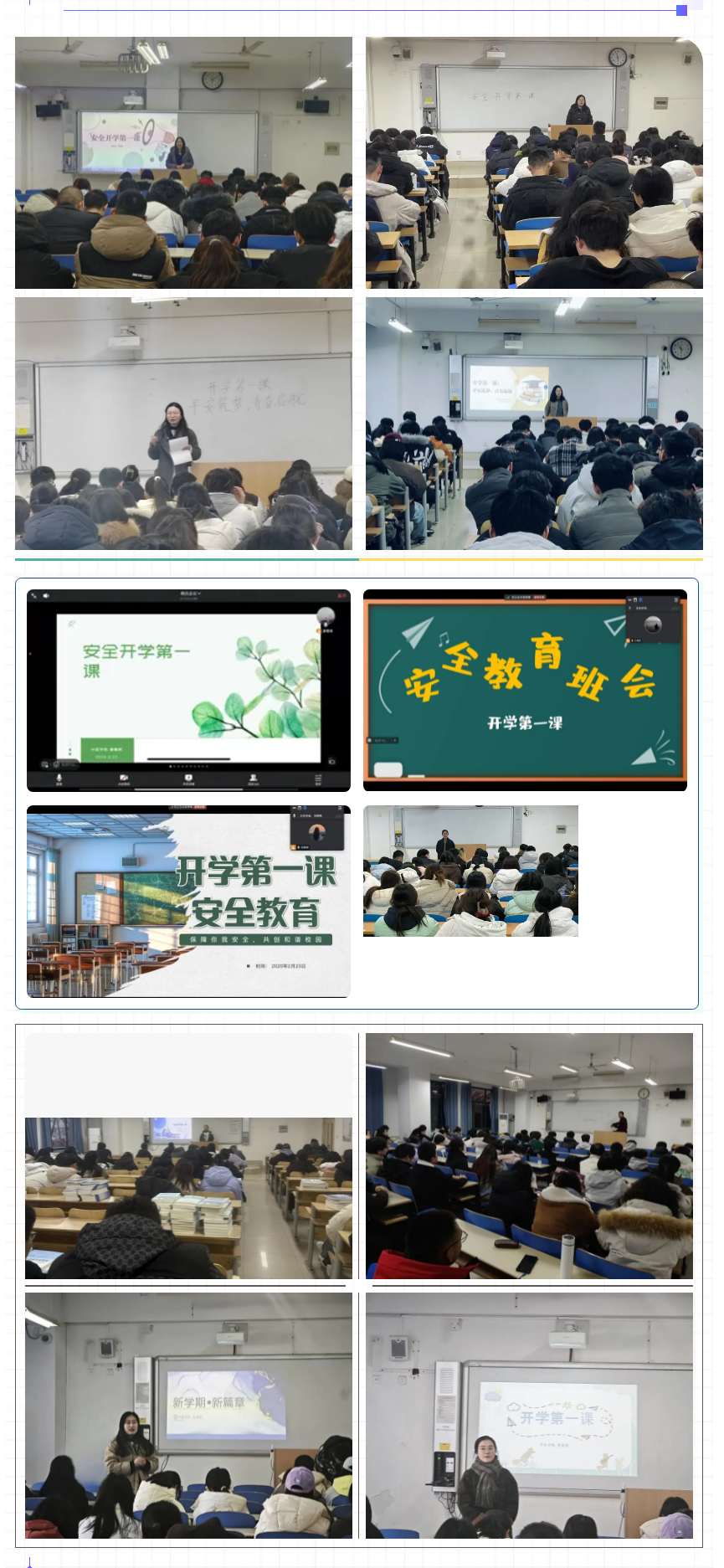 组织各专业班级开展了“安全开学第一课”主题班会活动。本次班会采用线上线下同步进行的方式,实现了全体学生的全覆盖,为新学期校园安全工作奠定了坚实基础。