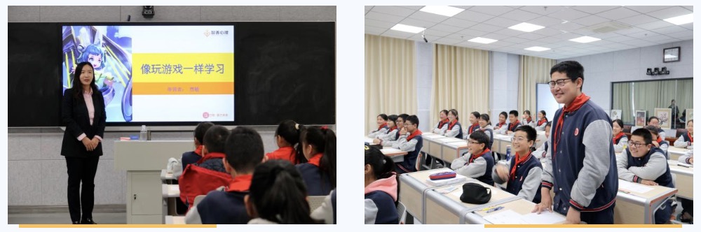 济南智善心理医院的中医师、心理治疗师贾敏为六年级学生带来了心理团辅活动《像玩游戏一样把学习变有趣》。她通过有趣的游戏和互动,引导学生们培养积极的学习态度和心态,现场学生认真吸取知识,积极互动。