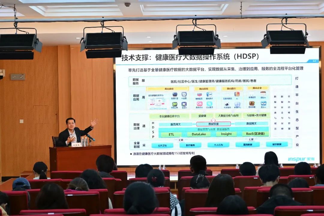 乔朕东从中西医临床医学专业学生的成长经历和自身求职创业经历出发,为中西医临床医学专业学生的学习、发展和就业等内容给出建议与指导,并着重强调了中西医临床医学作为一门融合学科所具有的发展方向多元化、专业前景时代化等特点和发展优势。同时从国家科技创新战略切入,结合浪潮集团在云计算、服务器等领域的全球领先地位,系统阐释了健康医疗大数据与人工智能技术的发展现状和应用场景,展望了“人机协同”的未来医疗核心范式,向同学们传达了“找准方向”“敢想敢干”“实事求是”“上下求索”的创新创业理念。