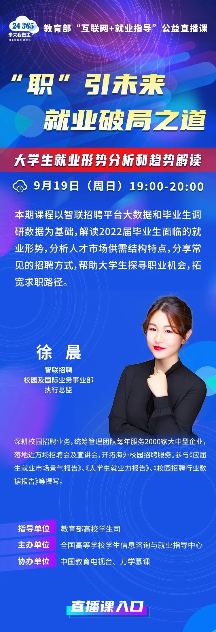 课程预告 | 教育部24365就业公益直播课:“职”引未来 就业破局之道—大学生就业形势分析和趋势解读