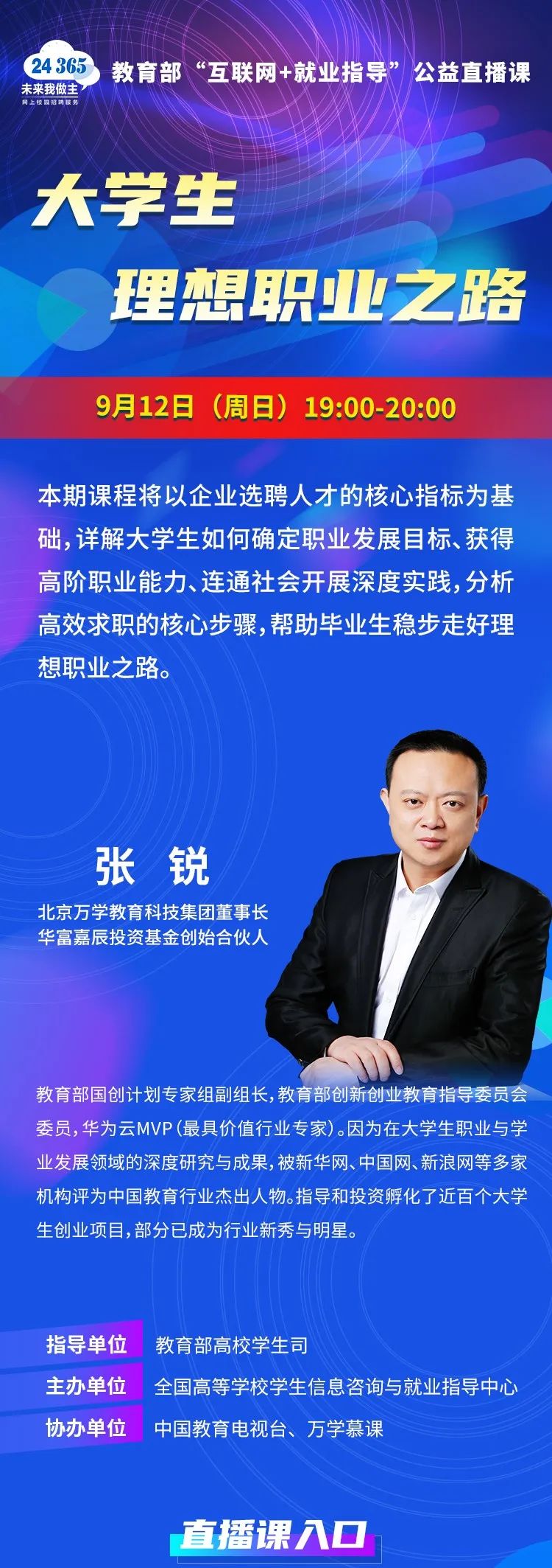 课程预告 | 教育部24365就业公益直播课:大学生理想职业之路