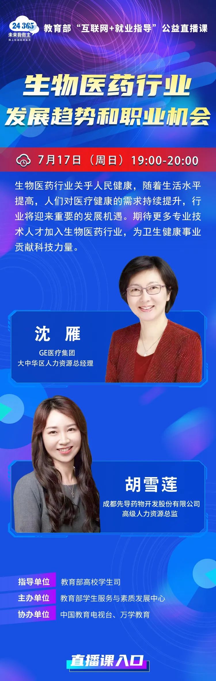 课程预告 | 教育部24365就业公益直播课:生物医药行业发展趋势和职业机会