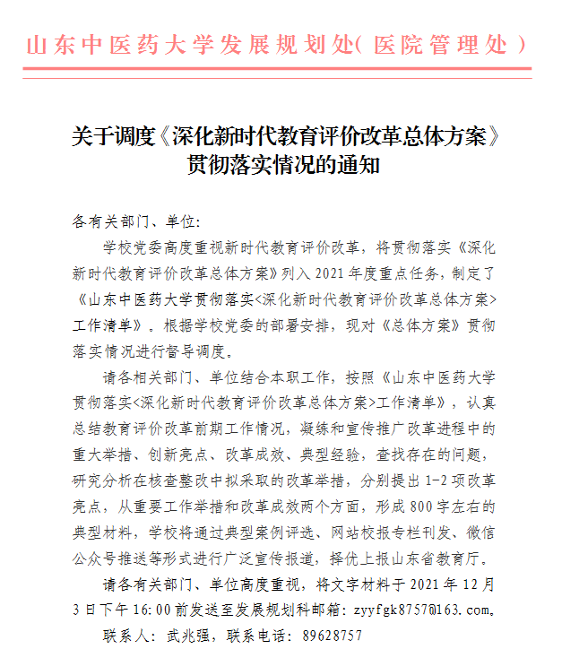关于调度《深化新时代教育评价改革总体方案》贯彻落实情况的通知