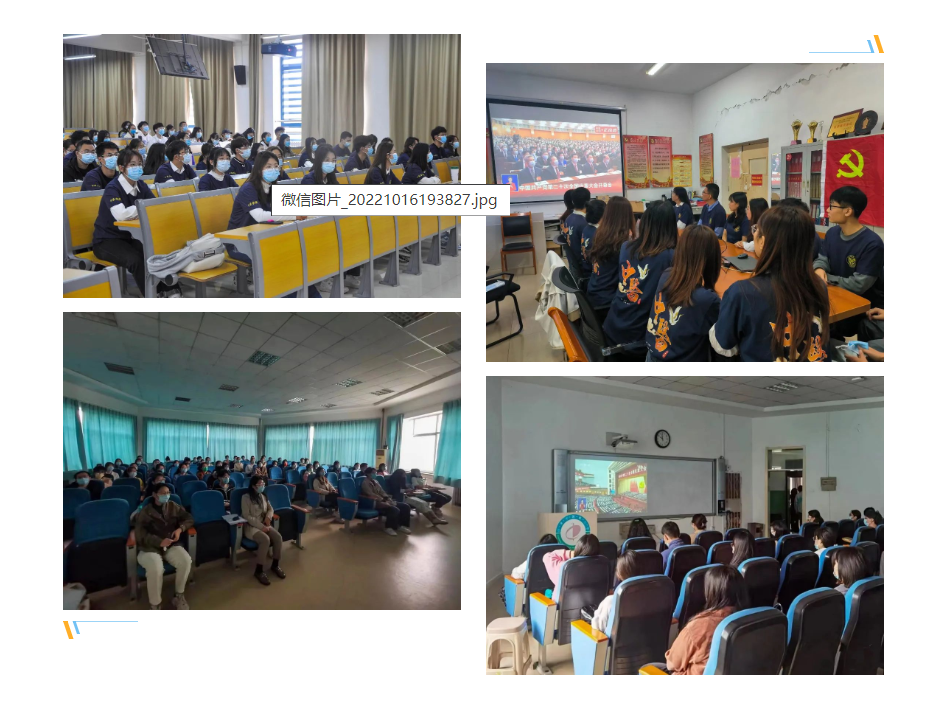 各团支部组织广大团员通过网络、电视等多种线上媒体平台收听收看大会盛况,认真聆听习近平总书记在大会上发表的重要讲话。