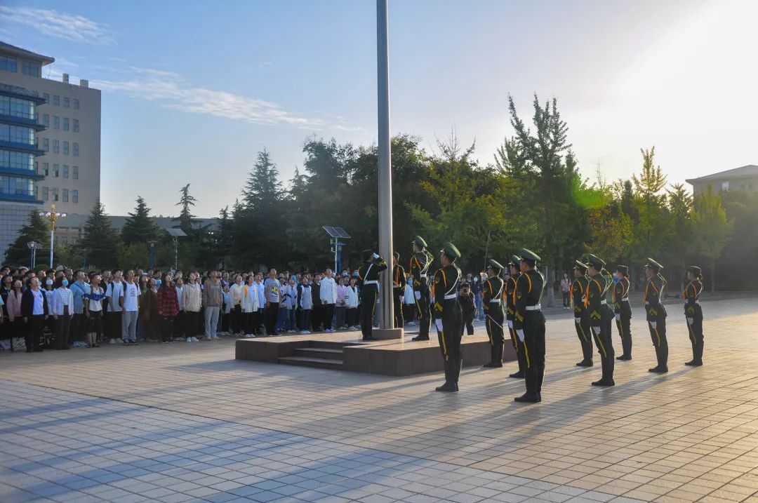 2022级全体本科生,在中兴湖广场举行了以“笃实求真做中医人,坚毅奋进迎二十大”为主题的升旗仪式。