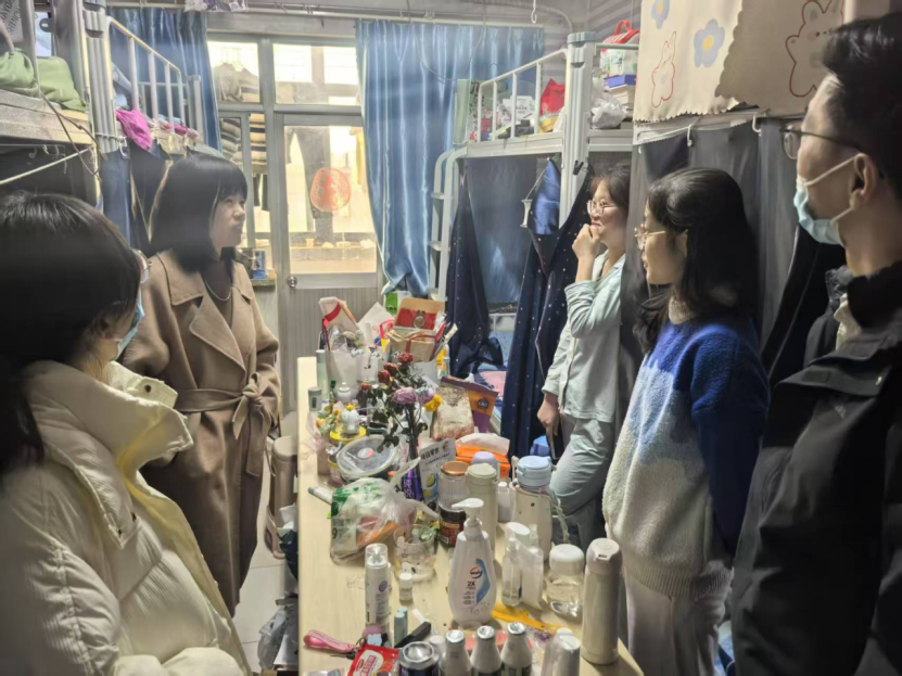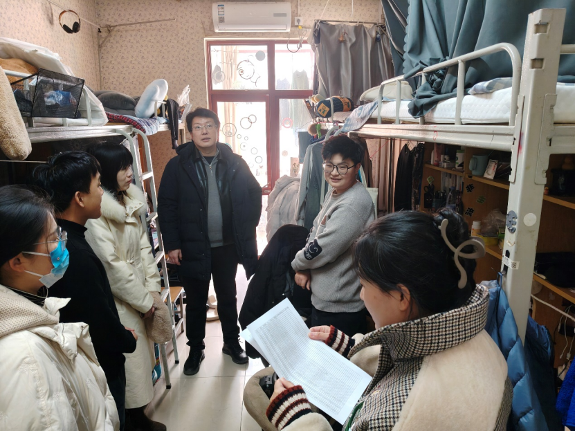 党委书记芦琳、副书记郭芳伶分别带队走访长清校区和千佛山校区学生宿舍,两校区辅导员陪同检查。
