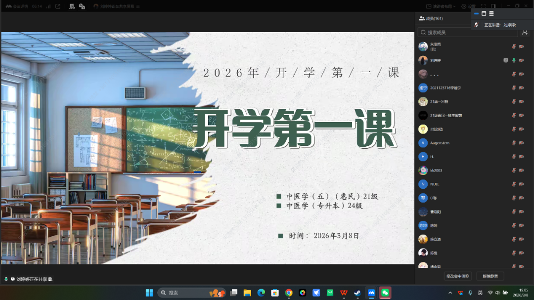 组织各专业班级开展“开学第一课”主题班会活动。本次班会采用线上线下相结合的方式,实现了全体学生的全覆盖,为新学期学生教育管理与校园安全保障工作奠定了坚实基础。