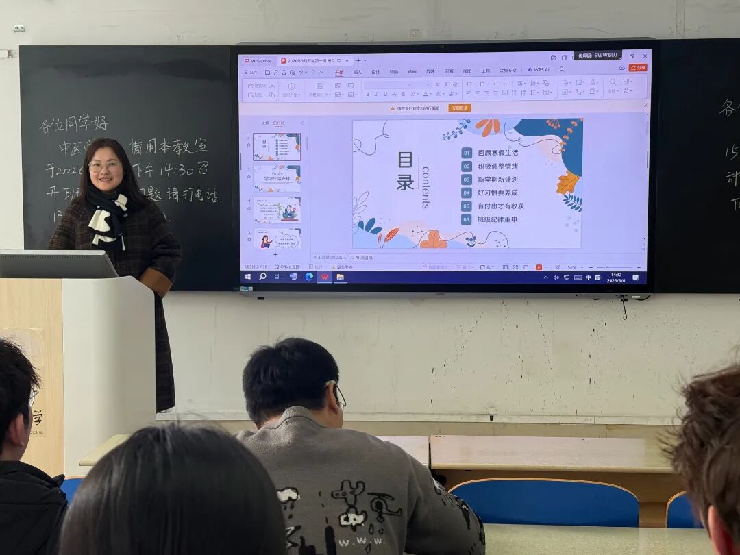 班会上,辅导员们围绕思政引领、安全筑基、心理赋能、学风建设、健康教育五大模块,重点聚焦意识形态安全、消防安全、人身和财产安全等领域展开深入讲解。辅导员们带领同学们集体观看视频《青年大学习|春节特辑:跃马迎春》,认真学习习近平总书记在二〇二六年春节团拜会上的重要讲话精神,并邀请同学们分享学习心得,教育引导同学们坚定理想信念、厚植家国情怀。同时,辅导员们积极动员学生参与学校组织的消防应急疏散演练、急救技能培训、安全知识讲座等活动,让学生掌握必要的逃生避险和自救互救技能,切实提升学生的安全防范意识和自我保护能力,共同营造安全、和谐、健康的校园环境。