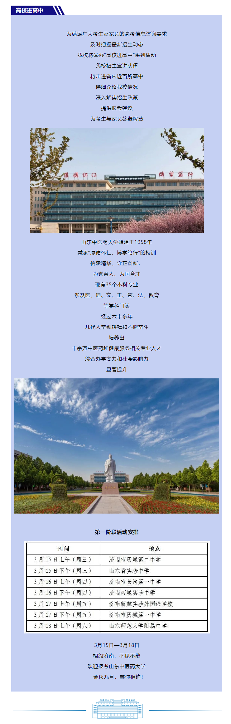 山东中医药大学2023年“高校进高中”系列活动正式启动!| 第一阶段:济南站