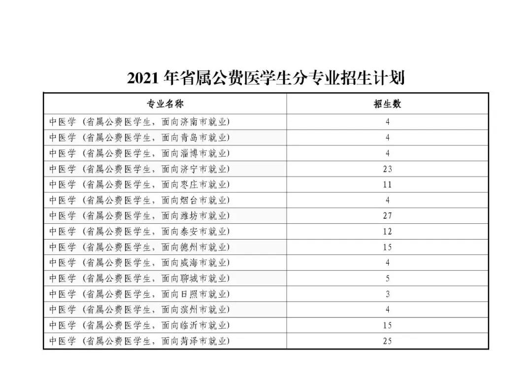 2021年省属公费医学生分专业招生计划